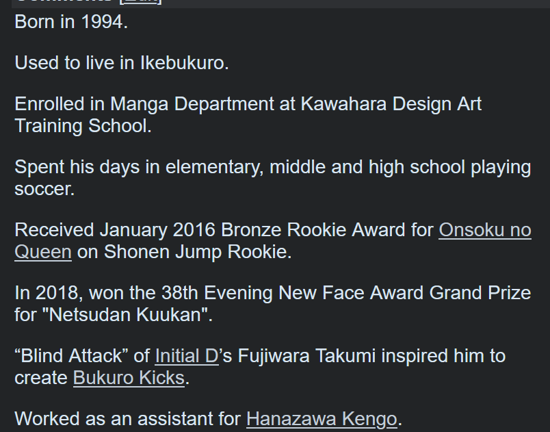 Info on the mangaka. this is his second manga, first one started in 2020. Used to be a assistant for the mangaka of I Am a Hero, Under Ninja.
