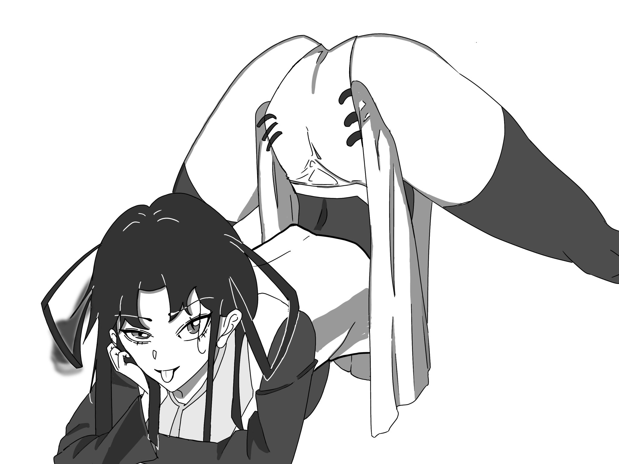 HEROshige peacefully resting on QUEENaki's thighs...