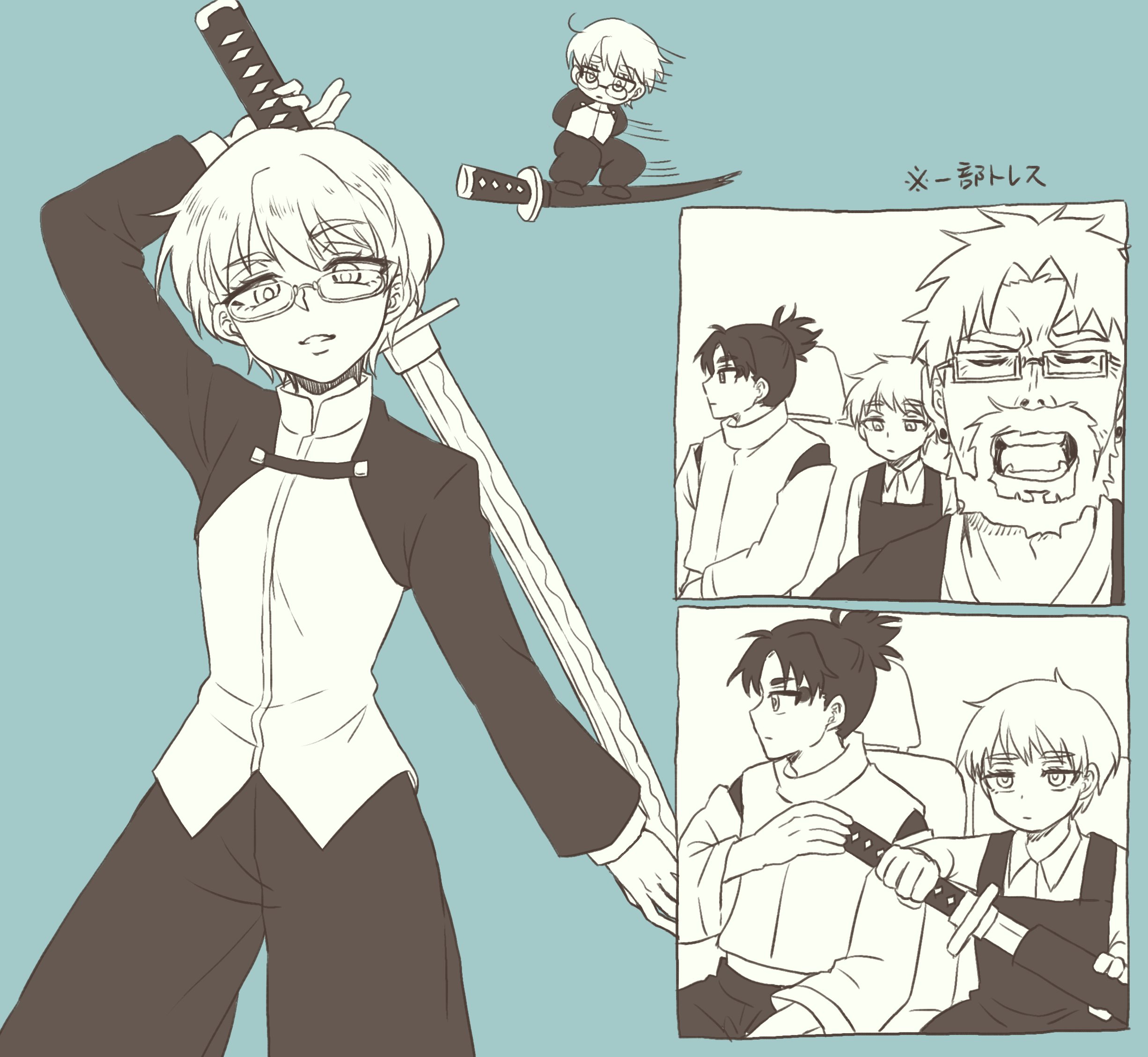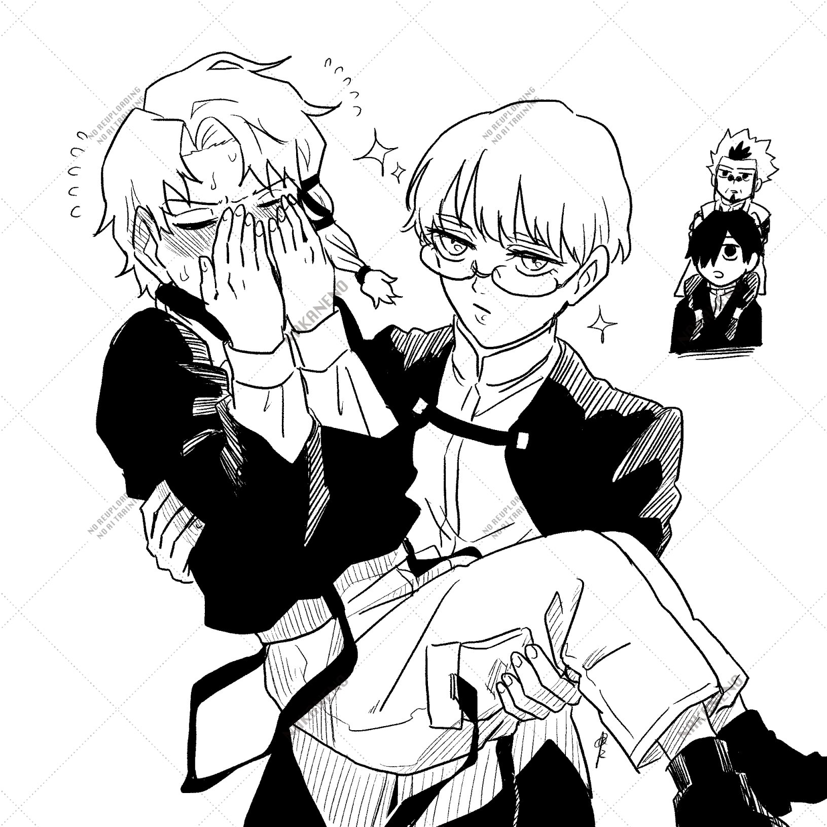 In an integrated junior-senior high school, Souya and Hakuri are only in the same class for that one year when Souya's in his third year of high school and Hakuri's in first-year middle school, right... Even though they're in the next building over, seeing stuff like Souya coming over to Hakuri's place every break time, or Souya making Hakuri wear his own jersey (which is super baggy on him) when Hakuri forgot his gym clothes—that's just the best.