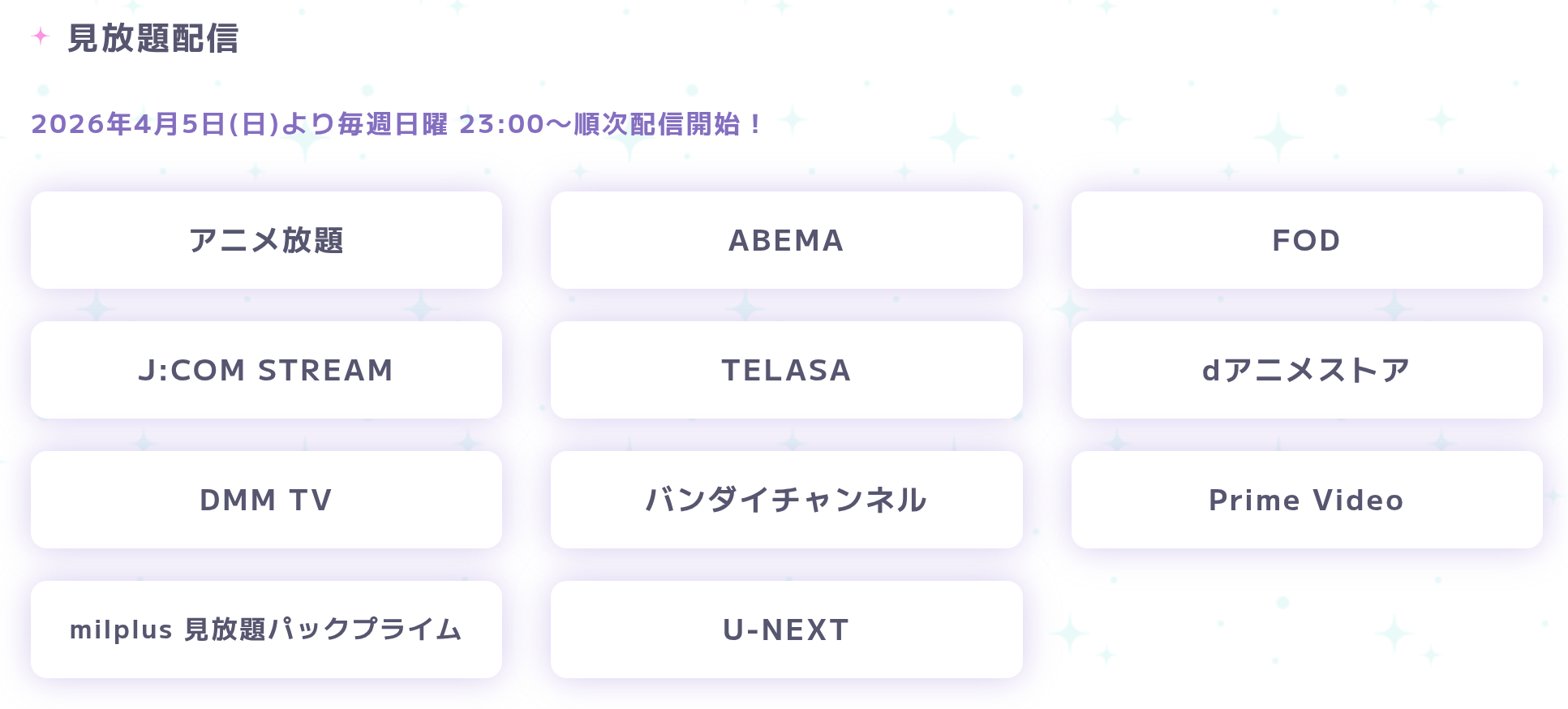 >no subs on Crunchy, HIDIVE, Netflix, Hulu, or Amazon