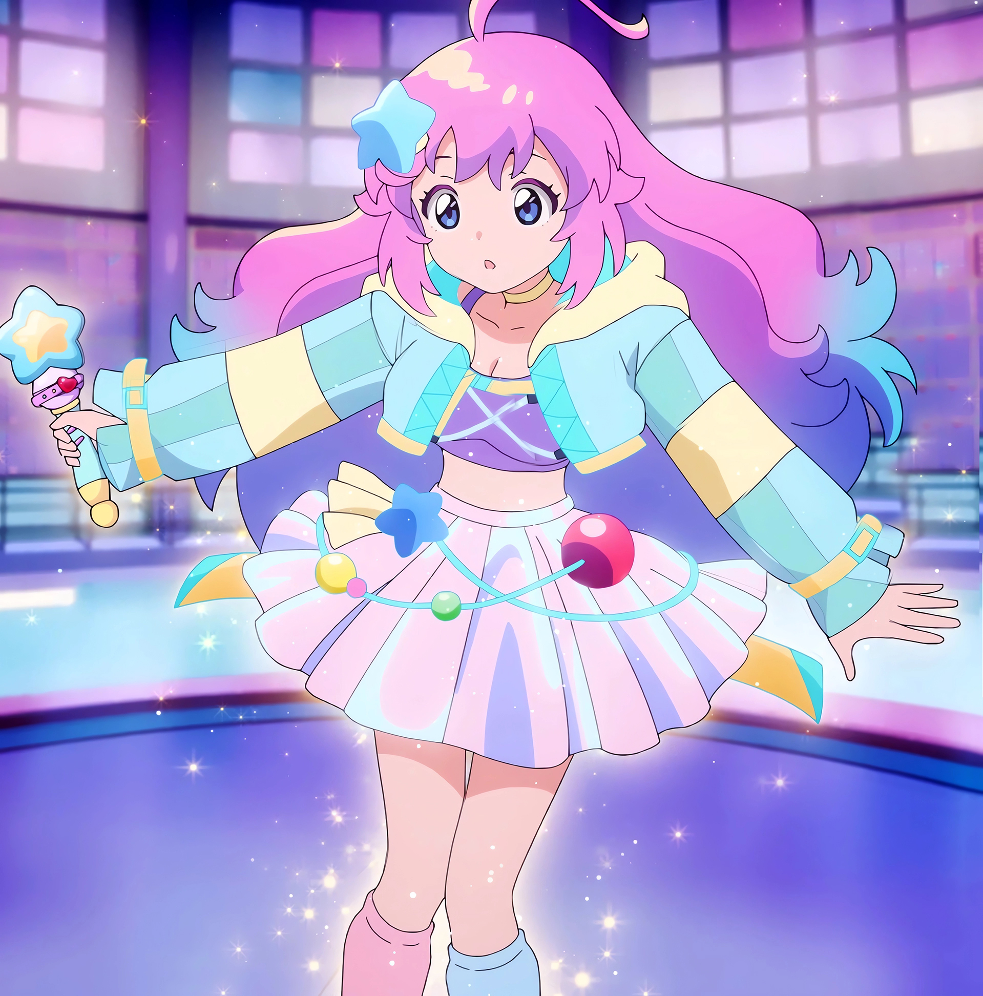 Feels like a kid show despite airing late. Apparently it's a continuation of mahou shoujo series Pierrot did 20 years ago.
