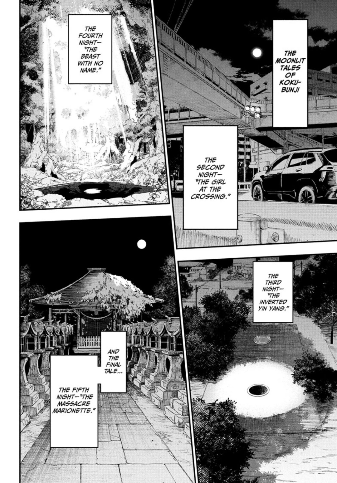 Agravity Boys creator new manga!Ordinary Seiroku Akari is a dedicated member of his high school science club. When he vows to uncover the truth behind an eerie urban legend known as "The Moonlit Tales of Kokubunji," he ends up being possessed by five curses. A haunting new series from Atsushi Nakamura
