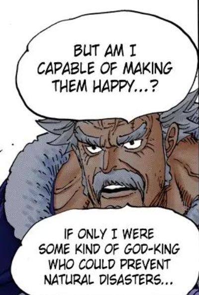 And he wants to make a Darwinist world where only power is appreciated (the world somehow isn't already like this despite being what motivated him to make the world like this) because... he thinks it will give his life meaning to be the strongest guy in charge? Except the only thing that he gives a fuck about is dying in a cool way and having cool fights. He also didn't care about how Luffy was going to change the world, just that he would, and he thought it was cool. You're just making shit up.