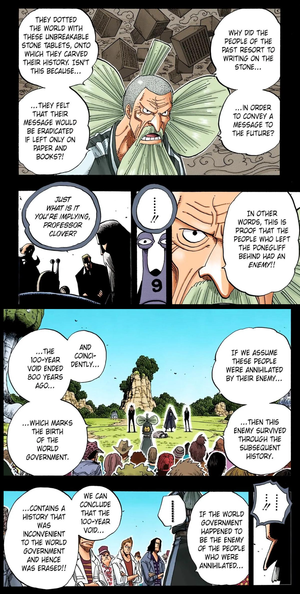 I can't find the specific panel, but it's when Clover is speaking to the Five Elders on the snail. He alludes to the idea of some ancient figure from the Void Era pulling the strings.