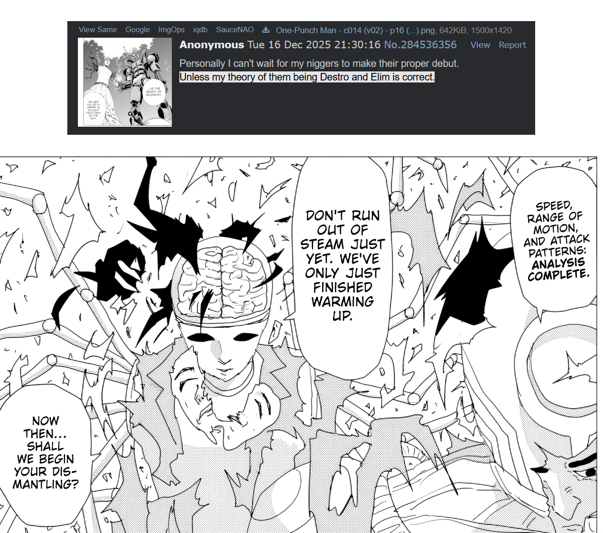 >>287291183Closest people got was Genos being the Mad Cyborg himself.