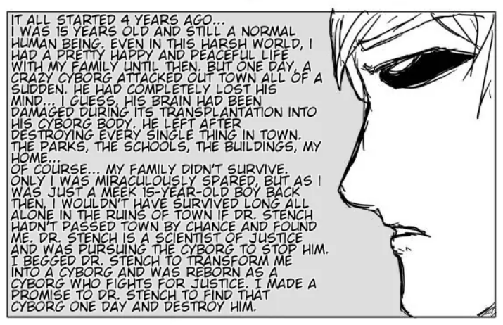 >>287291183It was always a bit suspicious that Genos, a victim of the mad cyborg, got taken in by an expert on cyborg technology of all people.