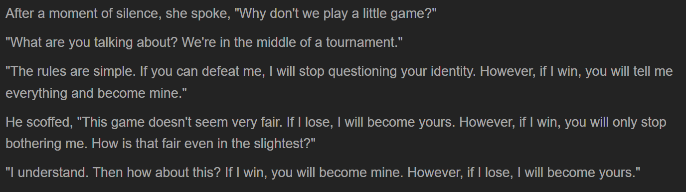 If you were still holding out hope that she wasnt a self-insert this chapter outright confirms it