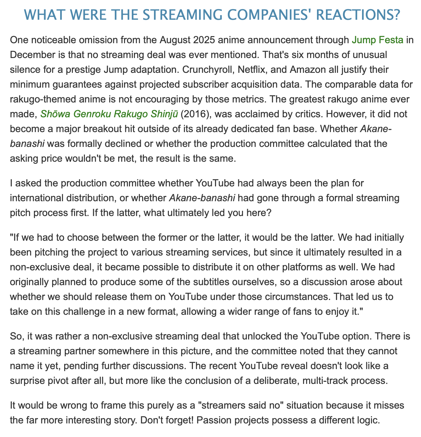 Akane-banashi fall from grace:- nonstop toc shilling- cp after cp after cp after lcp after cp- sales never improved- sales in fact got even worse- now toc is shit as well- shill anime like there is no tomorrow as a last resort- even put it on youtube for free- anime flops pathetically as wellWhat's next?