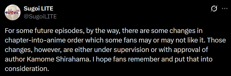 Something is getting reshuffled: https://x.com/SugoiLITE/status/2041191276981490117I assume they may skip a few things in order to fit the second trial in one cour.