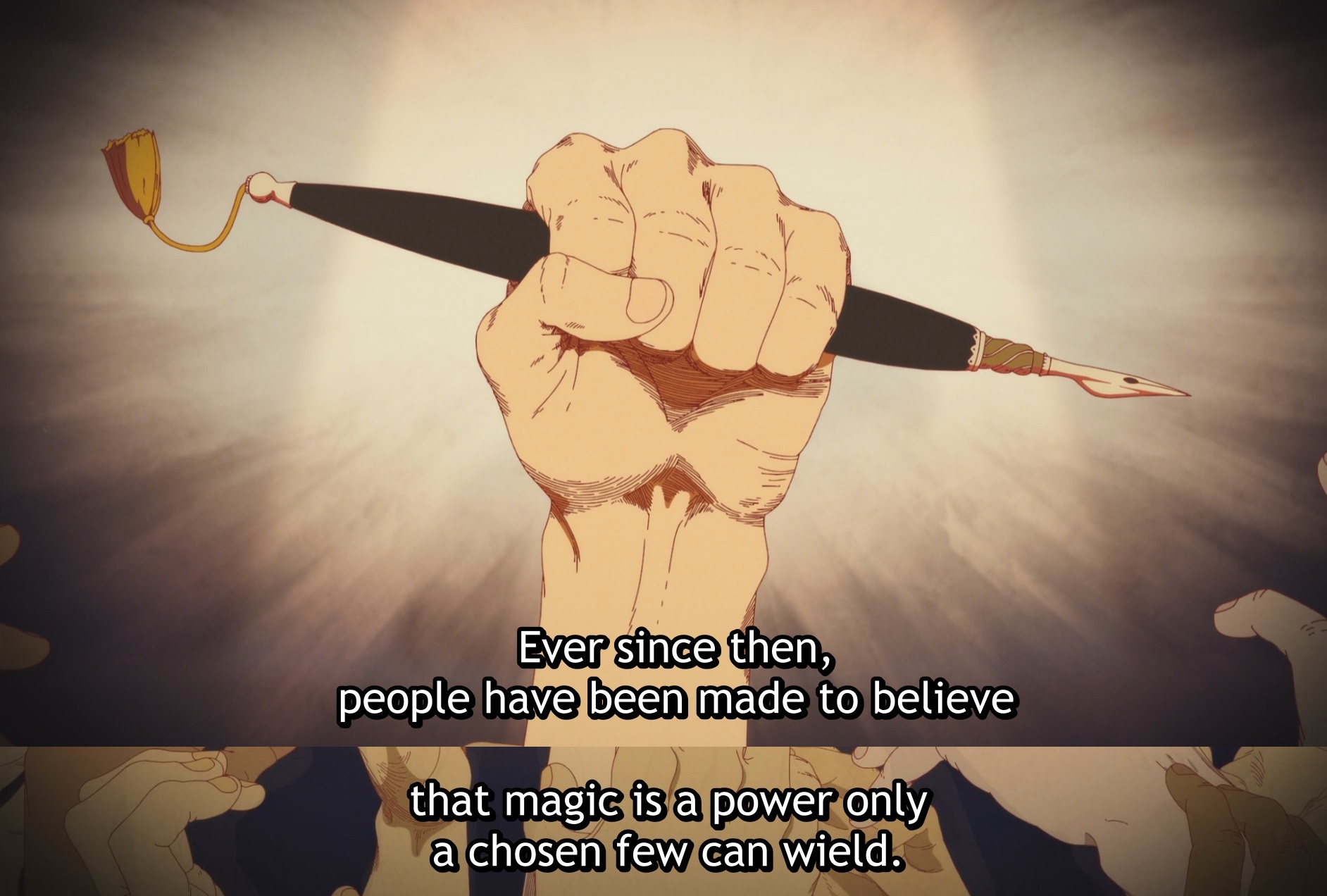 >>287293338Absolutely anyone can use magic, but other than knowing the runes, the ink is also special. Runes are often just left on enchanted items like the carriage and the base of the lantern seen in these episodes, so muggles could easily copy them but still be unable to cast magic without the ink.
