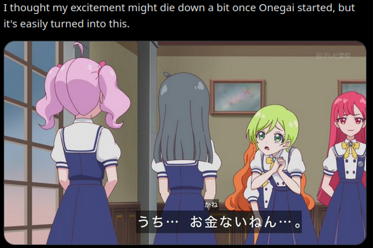 >>287309315>ainon: I wish AiPri is successful and we get a lot of seasons!>mfw HimiPri was so unexpectedly popular that Idol Land 2 was indefinitely shelved to focus on AiPri