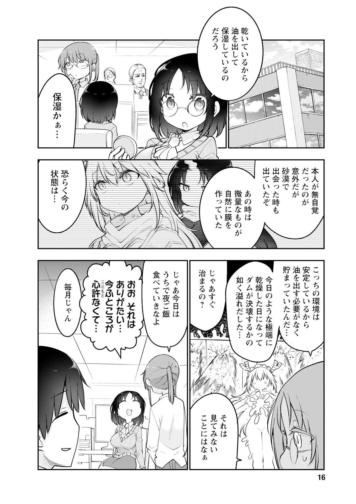>>287313124Elma: It's dry, so she's probably secreting oil to moisturise.Kobayashi: Moisturising, huh...Elma: It's surprising that she herself was unaware, but it was coming out even when we met in the desert. At that time, a small amount was naturally forming a film.Elma: The current state is probably...Elma: The environment here is stable, so there's no need to secrete oil, and it was accumulating... On an extremely dry day like today, it started overflowing like a dam bursting...Kobayashi: So it goes away, right?Elma: Can't say without seeing it...Kobayashi: Then stay at my place and have dinner tonight.Elma: Oh that's great... My wallet's a bit light right now...Kobayashi: It's every month, huh.