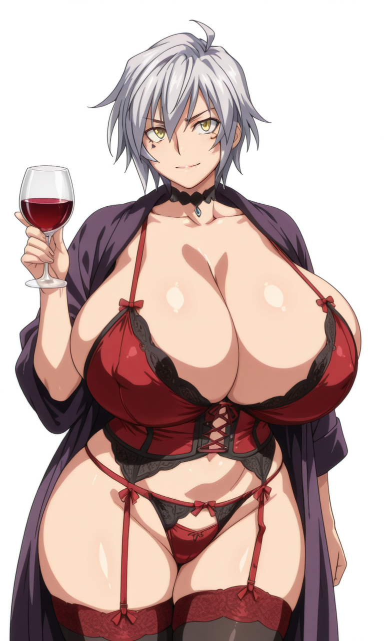 >>287335871Imagine she's got lacy negligee underneath that barely fits and squeezes in her massive udders