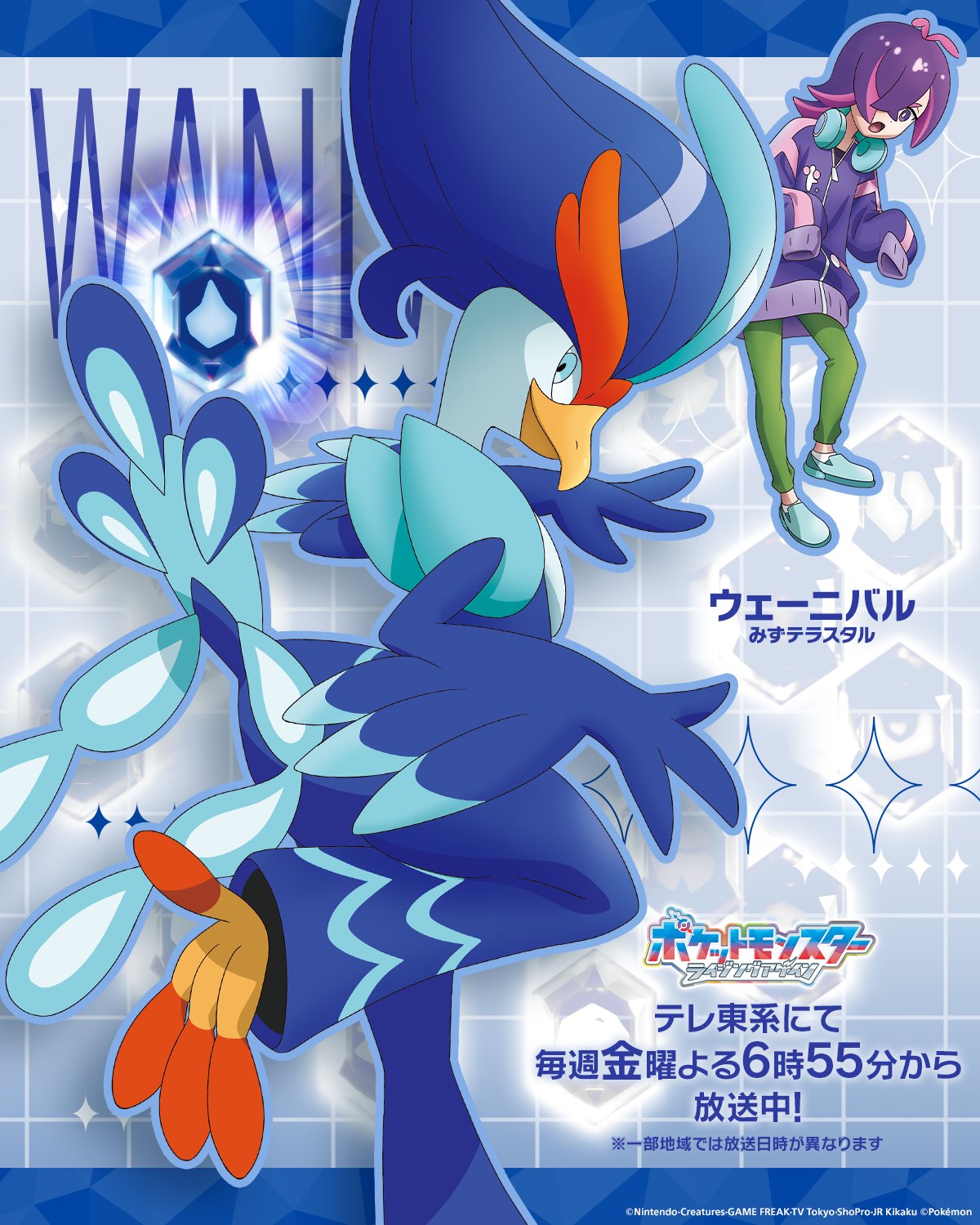 https://x.com/anipoke_PR/status/2036729817786429579>"Now then, off to the final battle!">Presenting the 18 Teras Type Pokémon and their strong Trainers that have gathered in order to fully eradicate the Rakulium:>No. 3, The Water Teras Type>DOT & WANIVAL