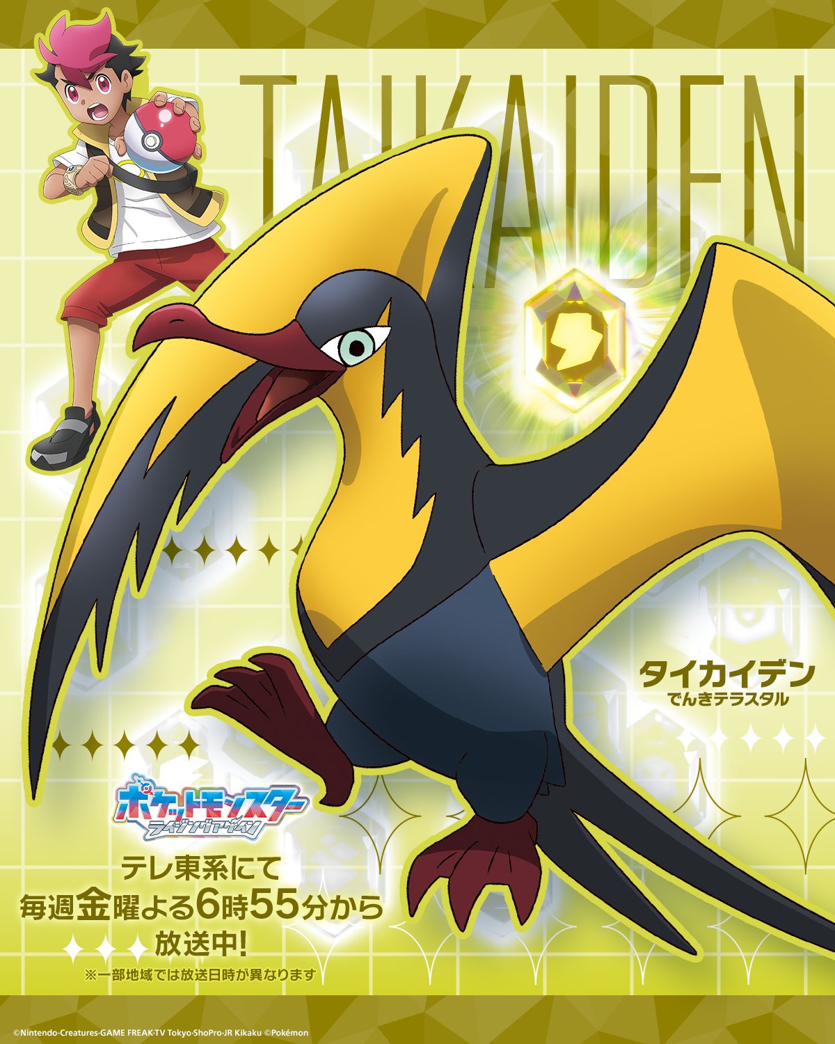 https://x.com/anipoke_PR/status/2038541758183956735>"Now then, off to the final battle!">Presenting the 18 Teras Type Pokémon and their strong Trainers that have gathered in order to fully eradicate the Rakulium:>No. 5, The Electric Teras Type>ROY & TAIKAIDEN