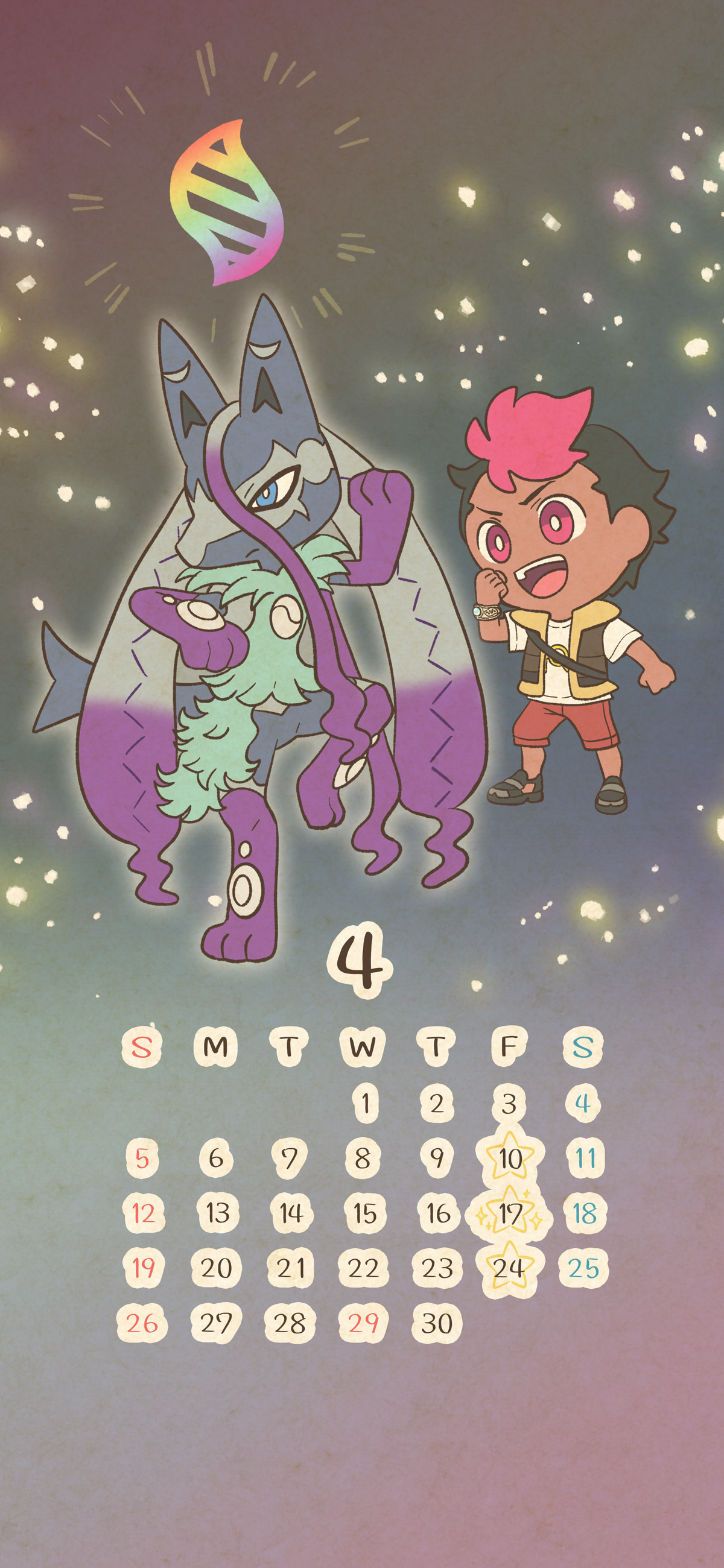 https://x.com/anipoke_PR/status/2039130624339091744>We give you a mobile wallpaper calendar made by Mojacookie-san. The theme for April is Roy and the Alternately Colored Mega Lucario Z! After its training, Roy's Lucario has acquired a new Mega Evolution and will now take on battles in this gallant form!