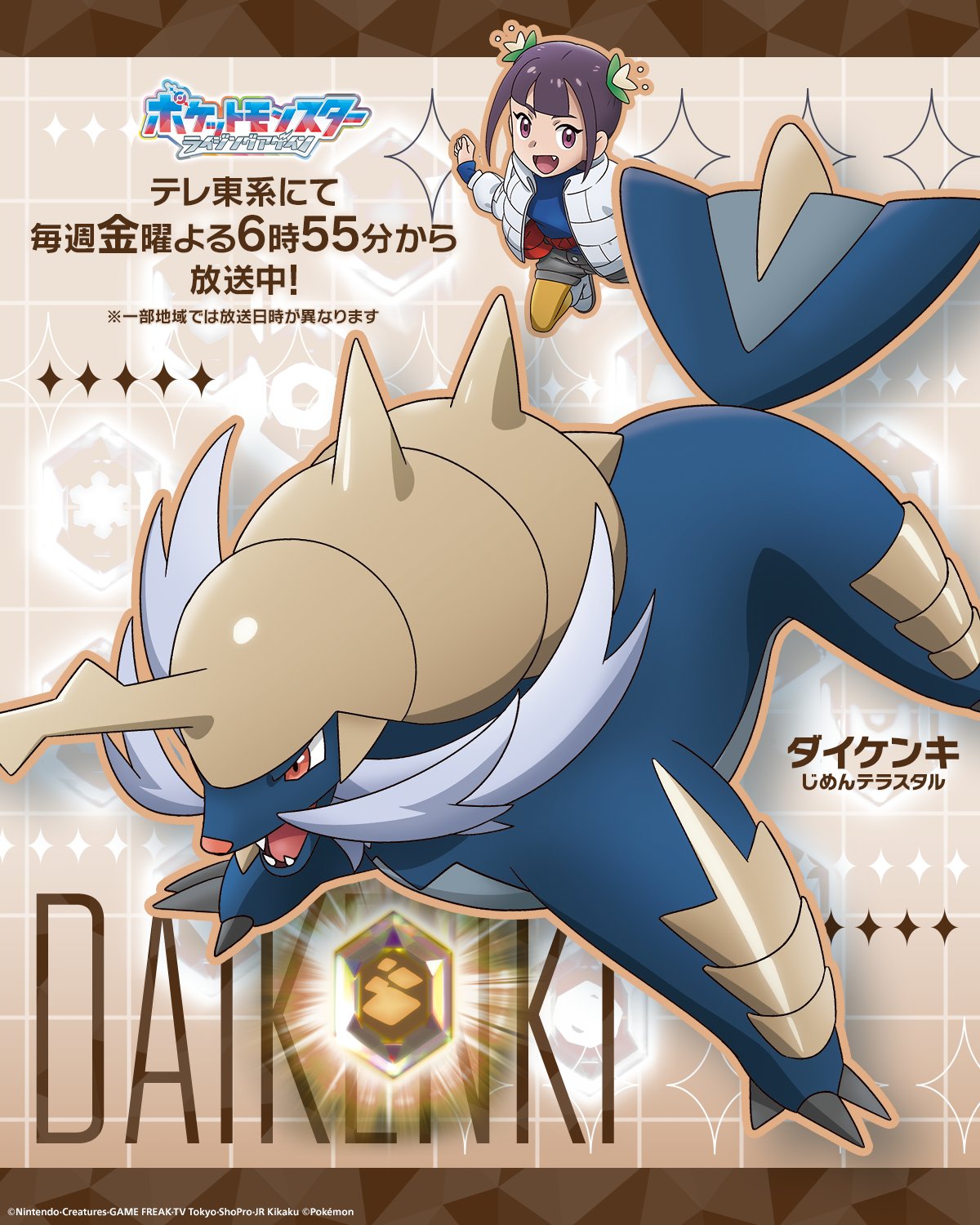https://x.com/anipoke_PR/status/2039628912255545399>"Now then, off to the final battle!">Presenting the 18 Teras Type Pokémon and their strong Trainers that have gathered in order to fully eradicate the Rakulium:>No. 8, The Ground Teras Type>ANNE & DAIKENKI