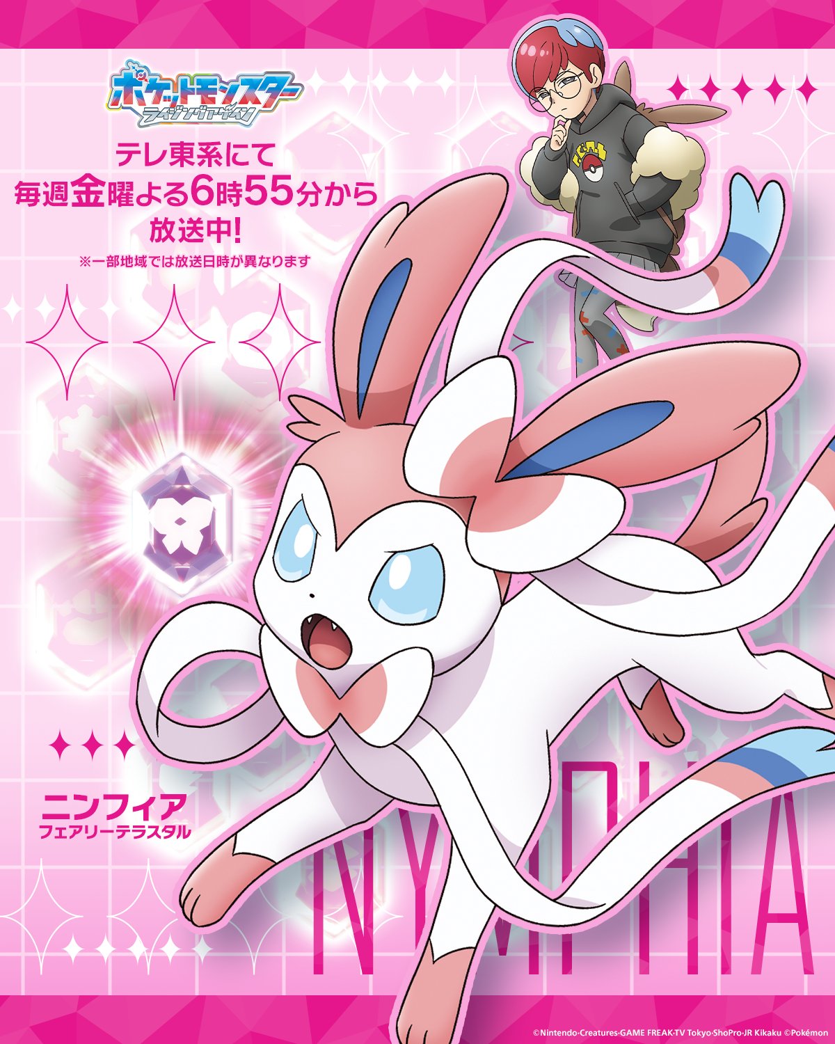 https://x.com/anipoke_PR/status/2039991298753720625>"Now then, off to the final battle!">Presenting the 18 Teras Type Pokémon and their strong Trainers that have gathered in order to fully eradicate the Rakulium:>No. 9, The Fairy Teras Type>BOTAN & NYMPHIA