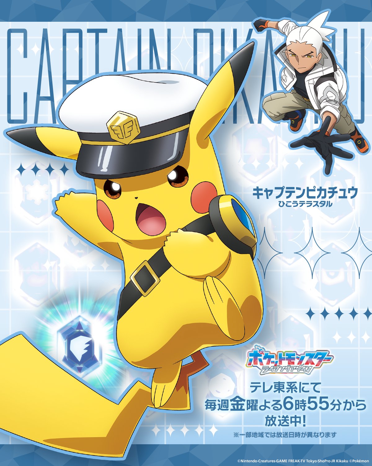 https://x.com/anipoke_PR/status/2040716071846744445>"Now then, off to the final battle!">Presenting the 18 Teras Type Pokémon and their strong Trainers that have gathered in order to fully eradicate the Rakulium:>No. 11, The Flying Teras Type>FRIEDE & CAPTAIN PIKACHU