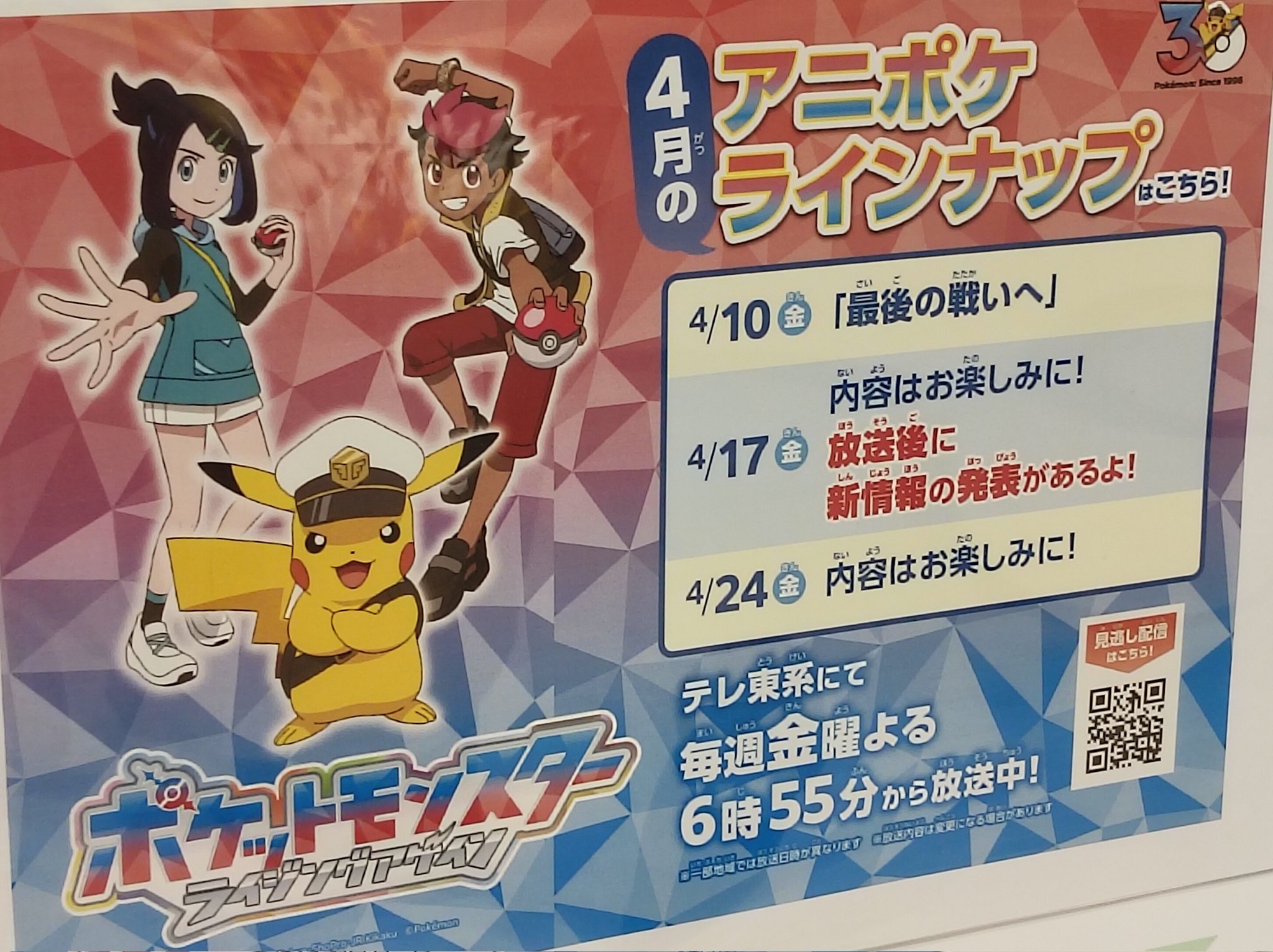 https://x.com/anipoke_PR/status/2034943041547723023>New Pokémon Anime Trailer:>The final decisive battle begins. Everyone come together as one and prepare to eradicate the Rakulium using the 18 Teras Type Pokémon! How will this fight go...?! And... We'll have news for you on Friday April 17th! Make absolutely sure to watch it, mon!