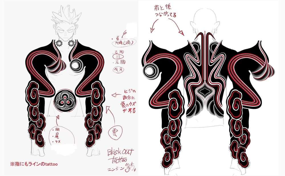>>287319193 Yeah the heavy blackout around the shoulders and spine makes it look like he’s swallowing something up underneath. Like the original markings are still there but buried. Also notice how the lines get thicker the closer they are to the center mass on his back - almost like he didn’t want whatever was there peeking through. That’s not just aesthetic, that’s “I’m erasing this shit” energy. If it really is a cover-up, that adds a whole extra layer to his past. You don’t black out half your torso unless you’re trying to kill a former identity.