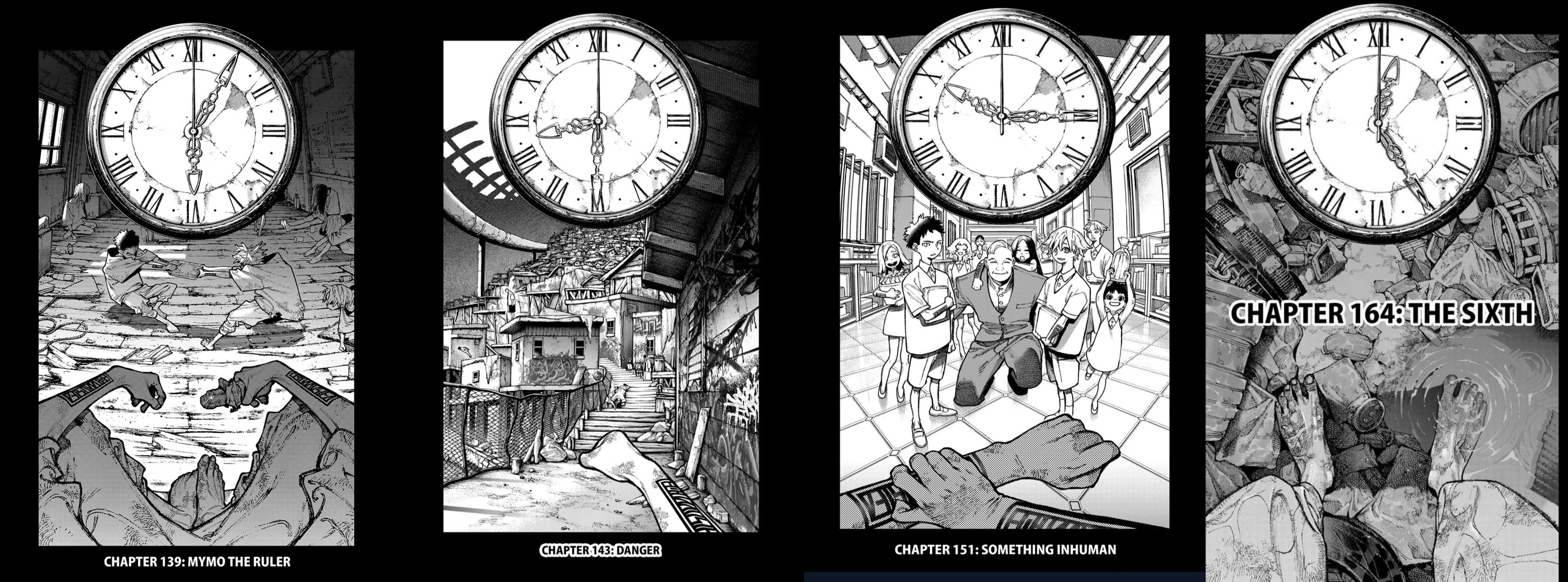 >First time this clock appeared when Amo KO'd Enjin>Enjin has something small in his bag, probably the second vital instrument>Last chapter page - Enjin is going to the place where Mymo and Rudo are fighting> >>287312863 Mymo sliced with something that looks like the tip of Enjin's umbrella> >>287312888 ticking soundSo, it's Enjin and he's probably the six one