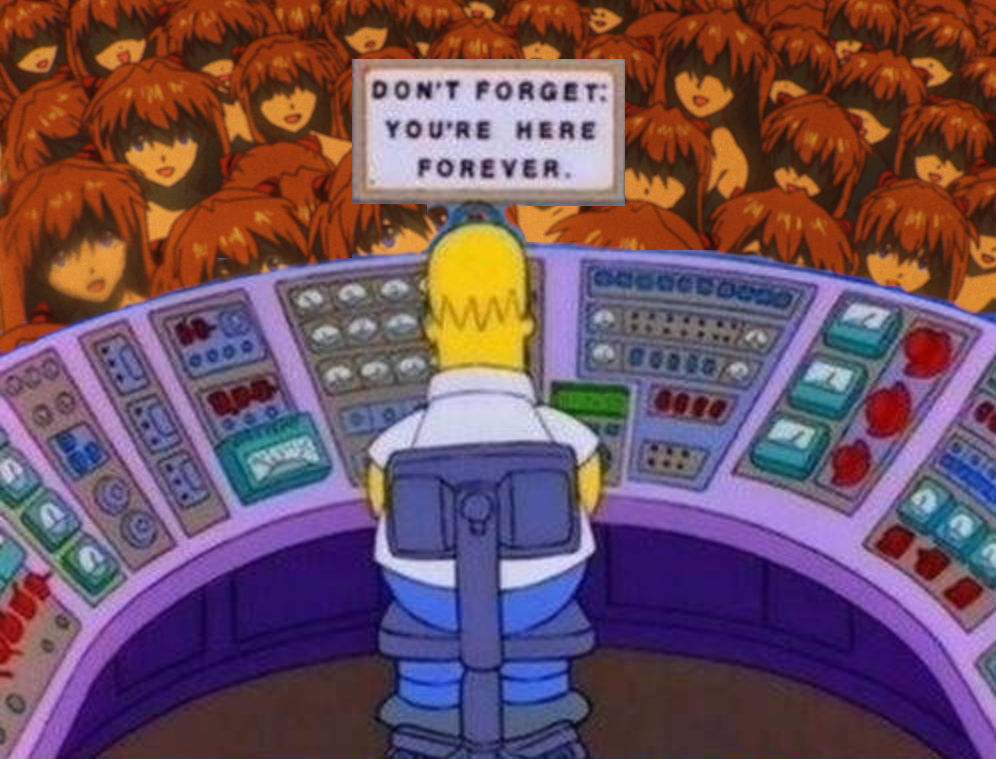 >>287338086Yeah but again, she also specifically states that after she’s protected everyone she’ll find her happiness, she’s sure of it. At the end of every version of the story there comes a time when Unit02 is gone and there are no more angels to fight. At that point she’ll be able to pursue her happy ending. In the context of EOE, shinji and her are still there. She’s still able to go forward from that point.This also all flies in the face of the manga, where we see that without Eva she’s a totally normal girl and it’s fine. She’s perfectly happy there. Maybe it’s Anno’s hang up that he can’t imagine an Asuka who isn’t fighting a squid thing and losing.