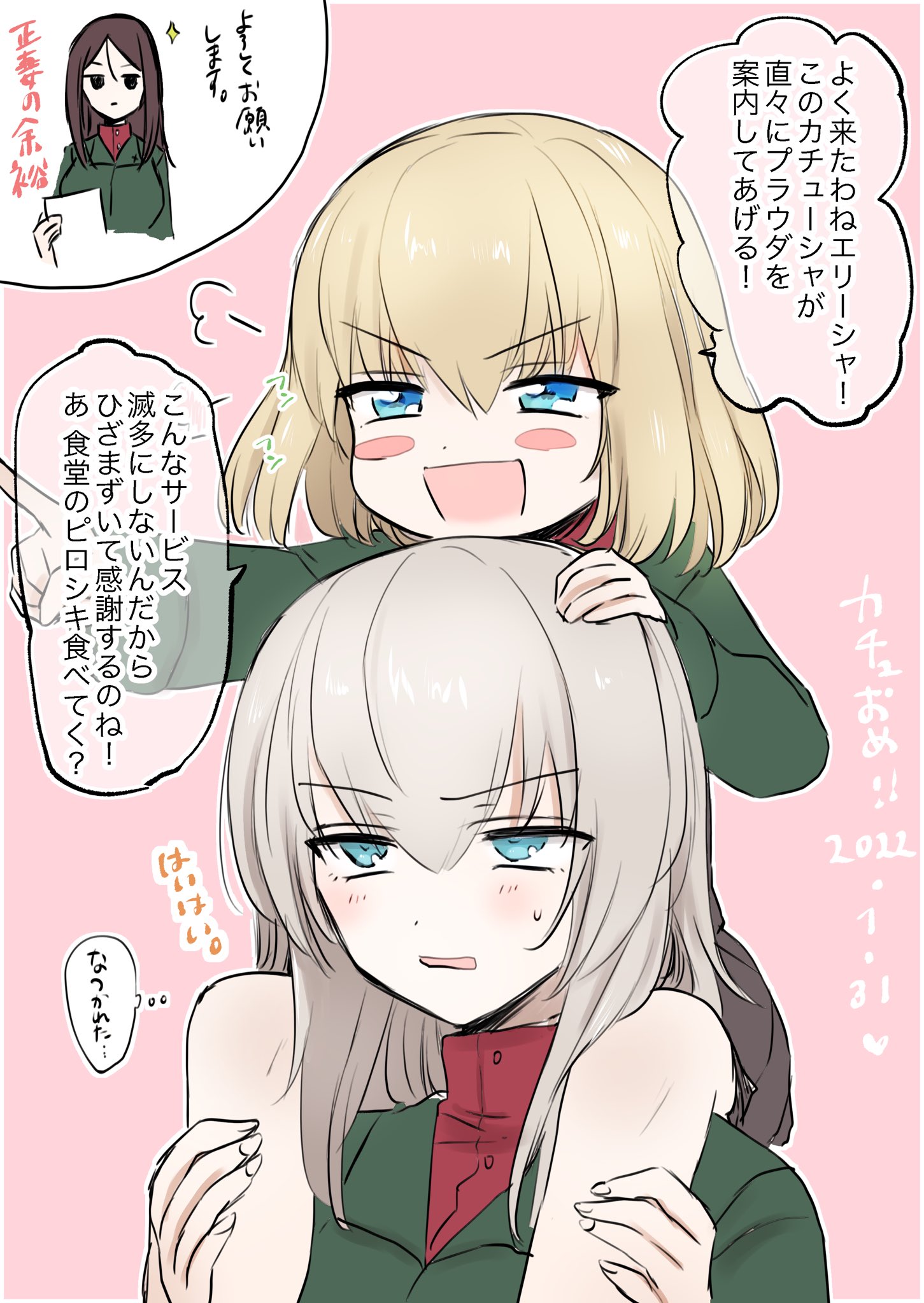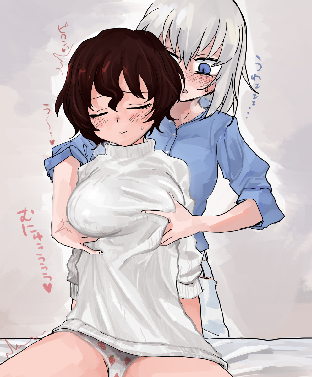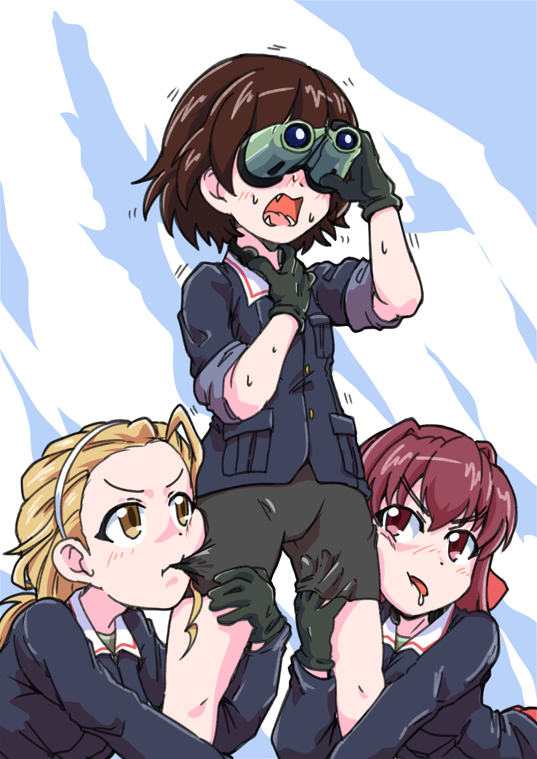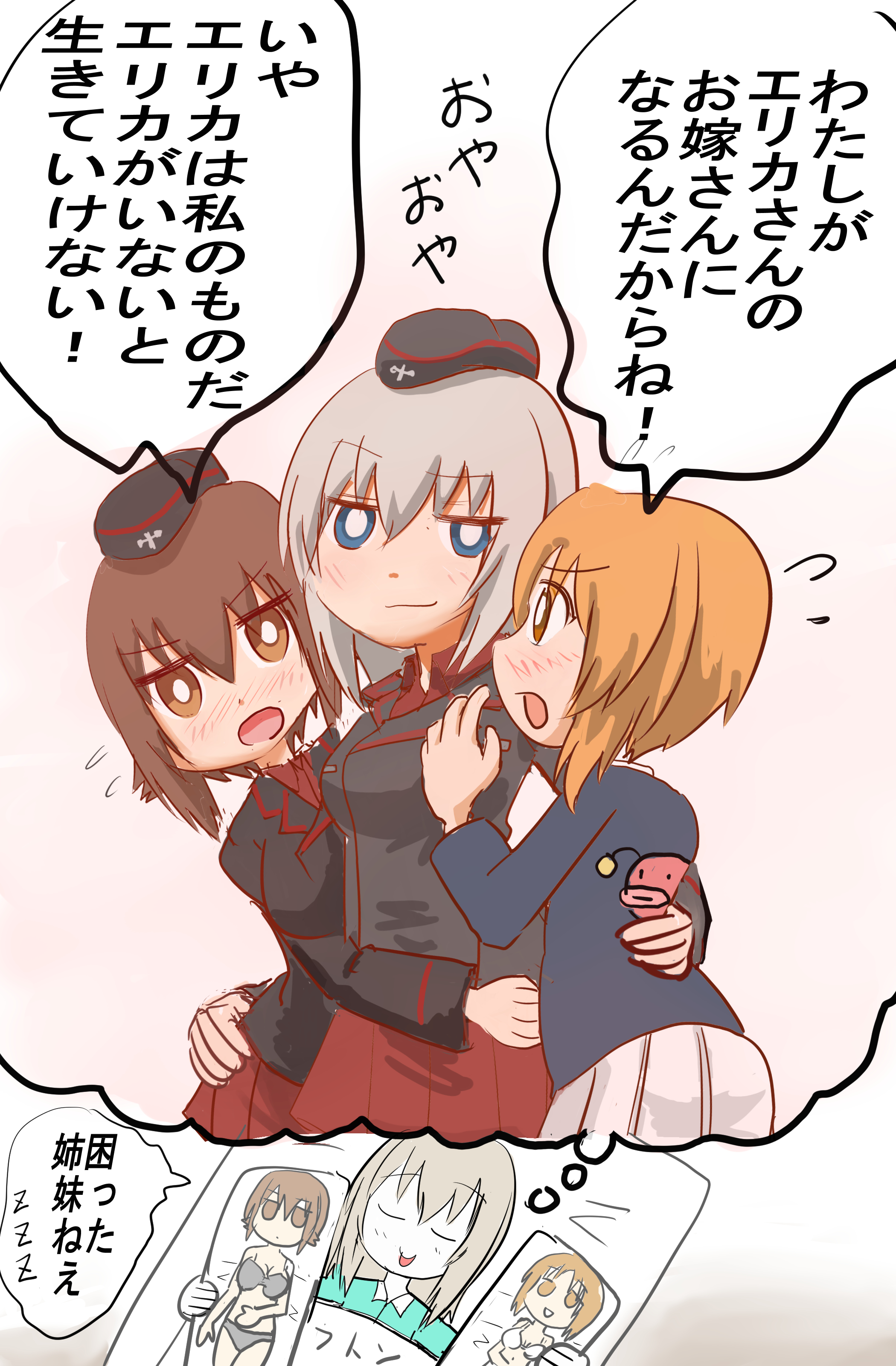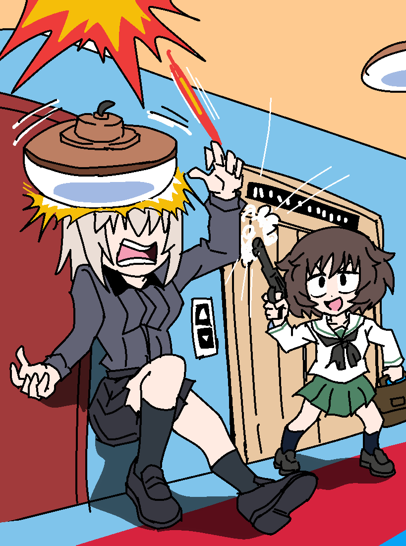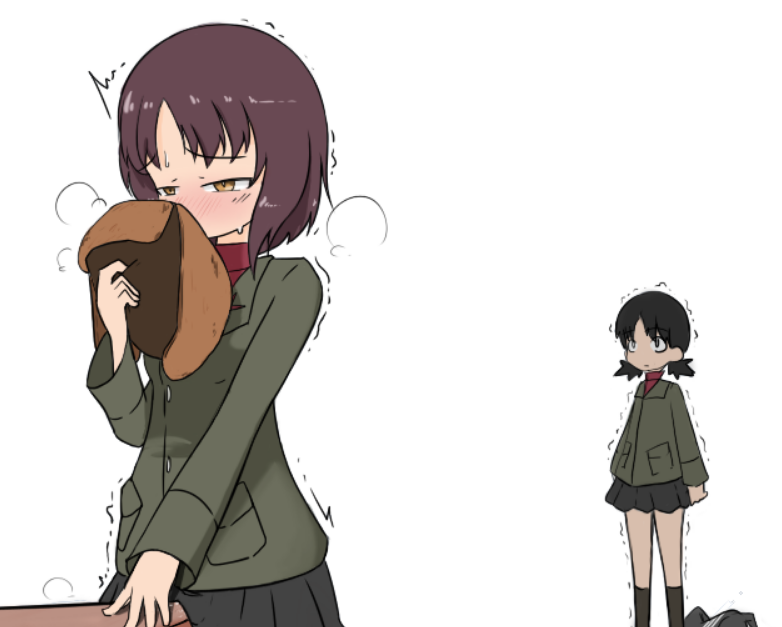 >>287318253Miho tops Erika while Maho plays train sim in the corner.