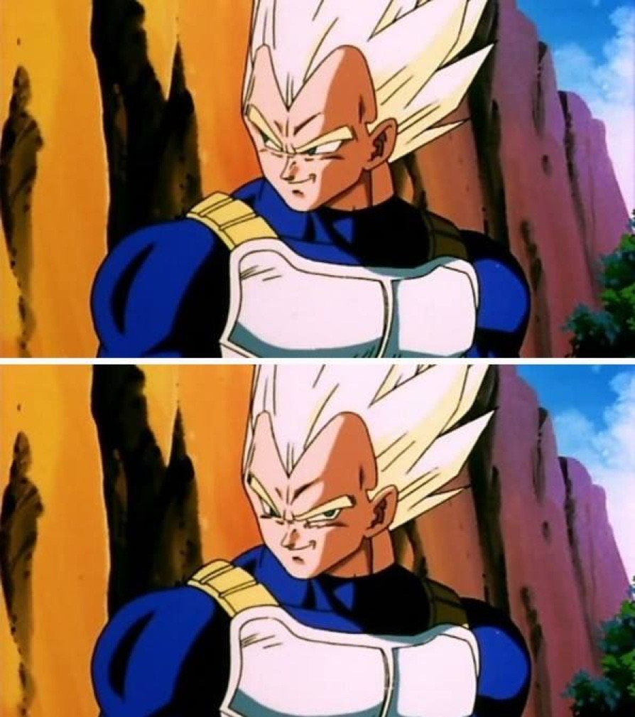 Bejita was so utterly mindbroken by Goku's power that he sold his soul to a wrinkly old goblin to gain enough power to close the gap in power that only increased since the Cell arc of the story but that was a lie too because Goku had Super Saiyan 3.How can anyone even like this pathetic balding midget who endlessly seethes and malds at Goku? We have never even seen a sincere, friendly smile on Bejita's face. Only a grumpy frowning eternal bitch-face dwarf.