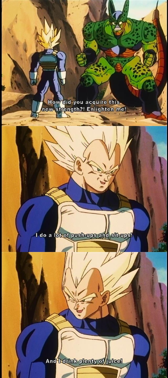 >>287325225In canon, Vegeta couldn't even get SSJ2 without a help from Babbidi. He is a loser