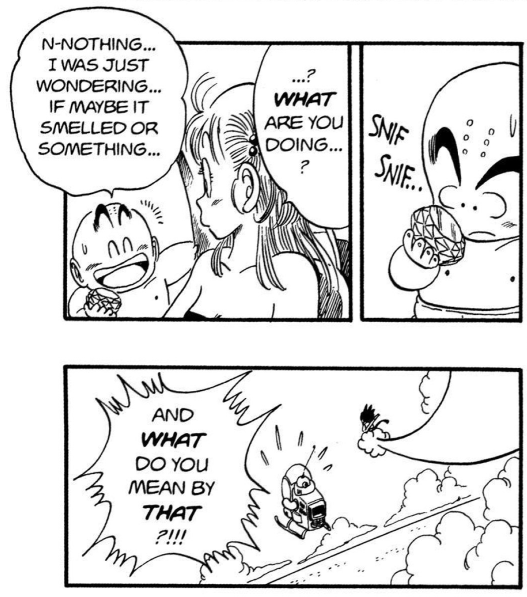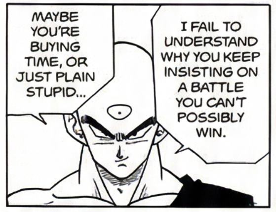>Of course I had to run away from Krillin! He had a sword! A fucking SWORD!! What am I supposed to do against a SWORD!?>W-.... W-what do you mean Kakarotto was bulletproof when he was only a child...?>...>FFFFFUUUUUUUUCCCCKKKKKK.............
