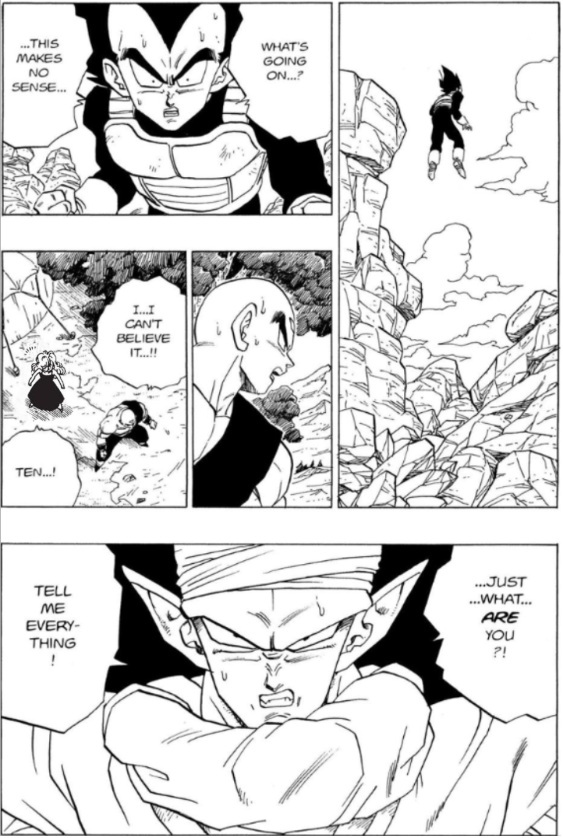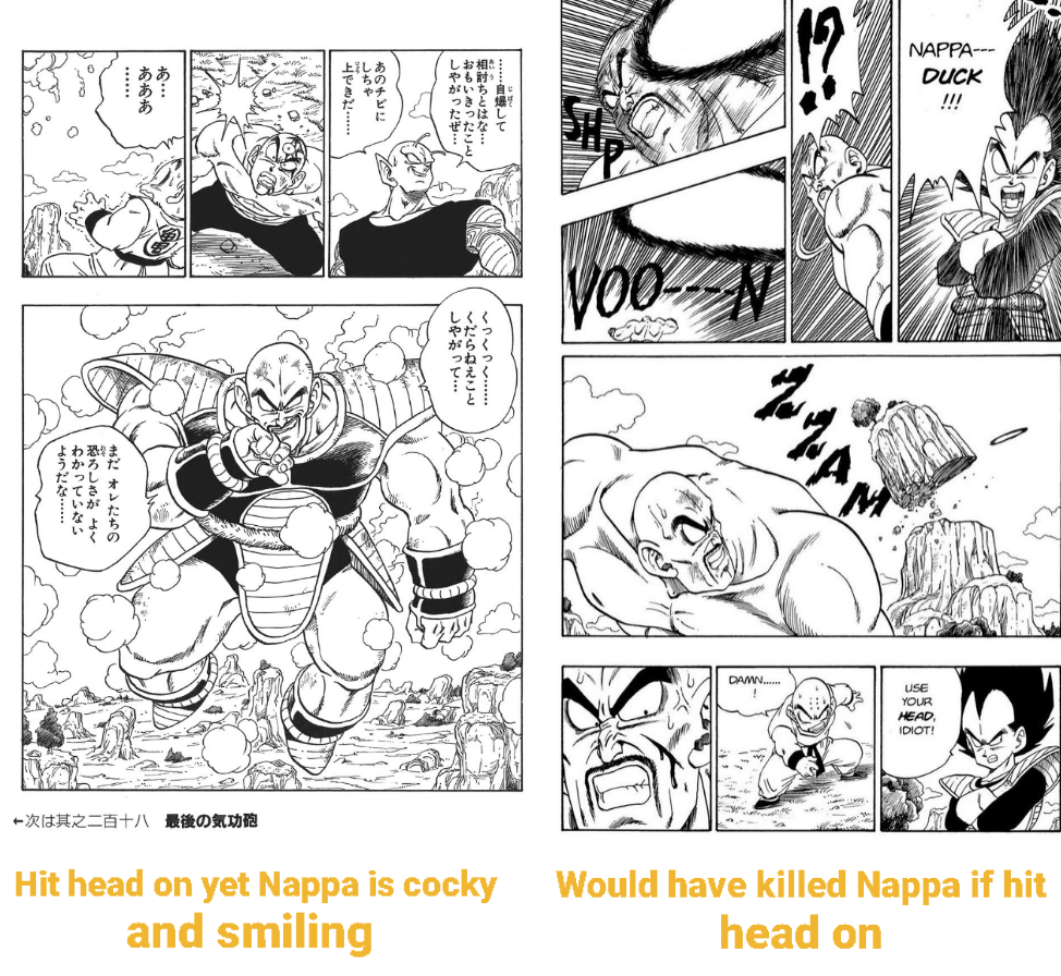 Did you know that Bejita never actually kneels in the entirety of the Dragon Ball series. The scenes in which it appears he is kneeling he's actually stand up right. This is caused "forced perspective" a technique the film makers of the Lord of the Rings movies used to make regular sized actors look like small Hobbits. Dragon Ball uses the same principle but in reverse! Instead of crouching or kneeling Bejita is just that small and in some scenes the human brain has trouble processing a humanoid being the size of a house cat so it looks like he's kneeling Instead. Pretty cool, right?