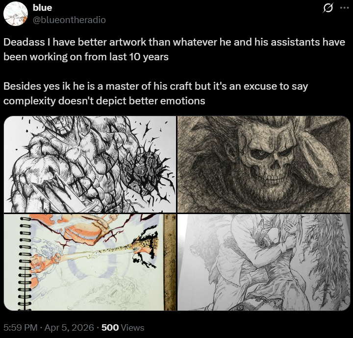 Very rarely have I seen agenda posting actually critiquing the plot:characters/etc that doesn’t devolve into “I have too much text to read and don’t like hiatus so I get mad”.