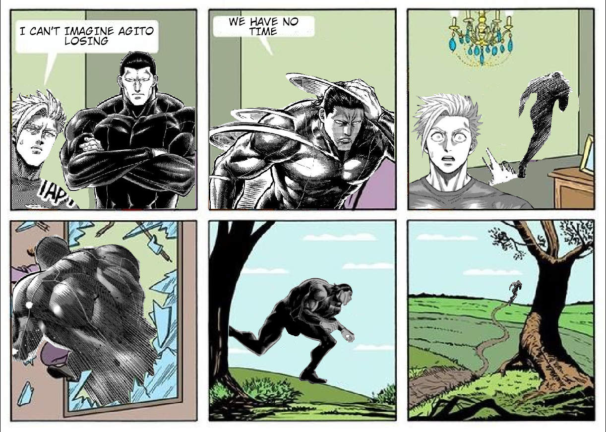 >>287342444>while Gaolang gets boosts left and right.And then despite all those boosts Gaolang's most notable win in still his fight against fucking Kaneda in Ashura