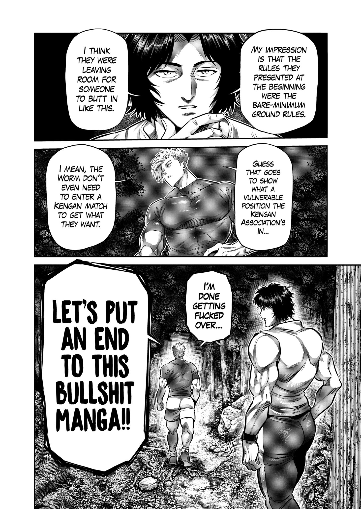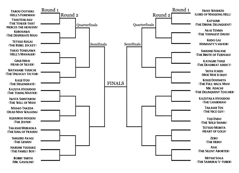 >>287343013>Realest tournament is billed as a pseudo Gu Ritual to make everyone stronger to have a chance to fight Shen (please do not think about it too hard)>Winner of the realest tournament gets the privilege of fighting Shen for the Kengan Association>Agito is dumped into this battle royale with every other fighter with no assurance he or anyone else who specifically participated in the "I am going to be the one to beat Shen" tournament will ever face ShenI remember while the tournament was going on some anons were pointing out how insane it would be if a regular fighter like Justin won it and the Kengan Association would have to convince him to fight Shen.>Ok so as your prize for winning this you MUST fight a magical guy who doesn't breathe, believes he's an equalizing force of nature with split personalities, and has essentially been alive for hundreds of years. He's also definitely the strongest fighter on planet earth. We don't really understand how he fights though. Good luck!
