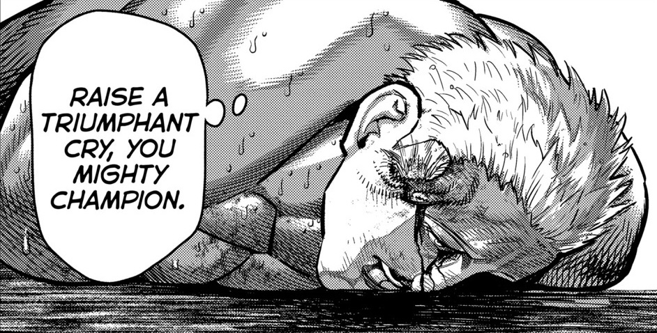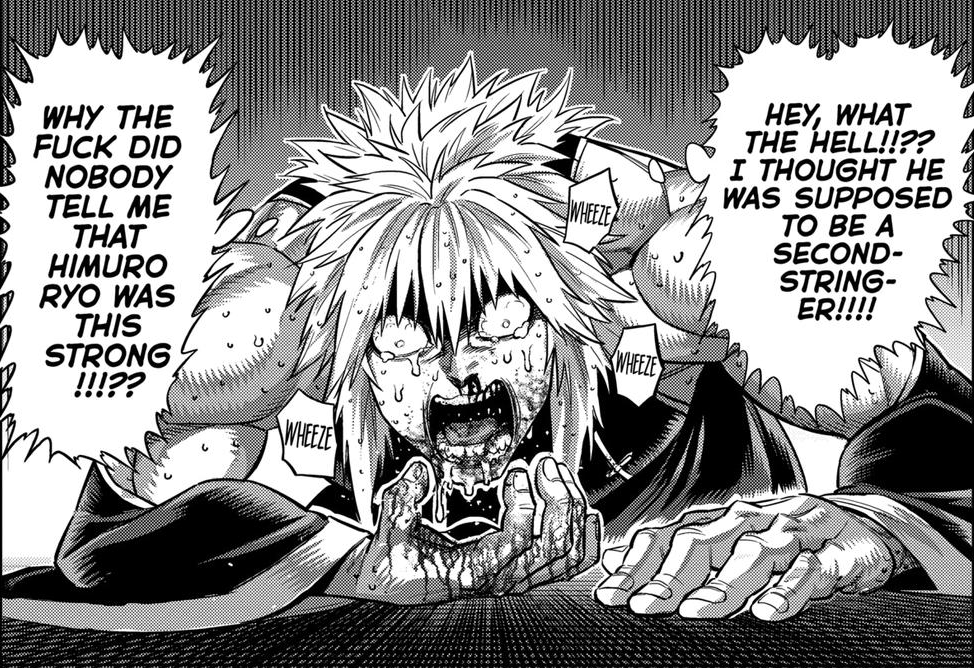 Who the fuck is satisfied by this. And what the hell is this cucked as fuck mentality Himuro has with him basically mentally submitting. The cherry on top is that nothingburger final glaze Waka gives to let the reader know that Himuro wasn't a total waste of time and was "strong"