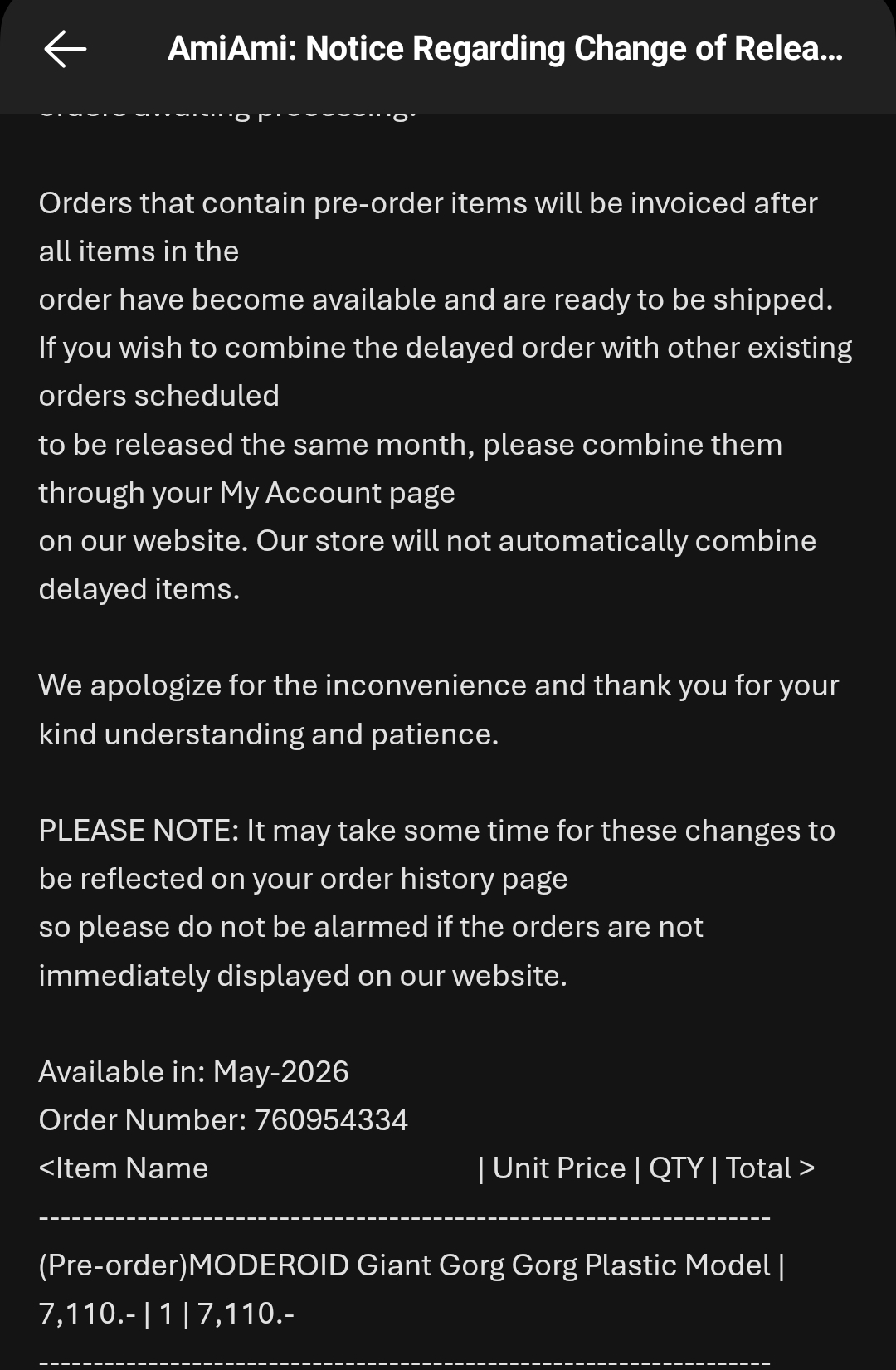 I did but somehow I got an e-mail notification about shipping half of my April order. It includes only items that are already in stock. Maybe the rest that are April pre orders will be delayed.