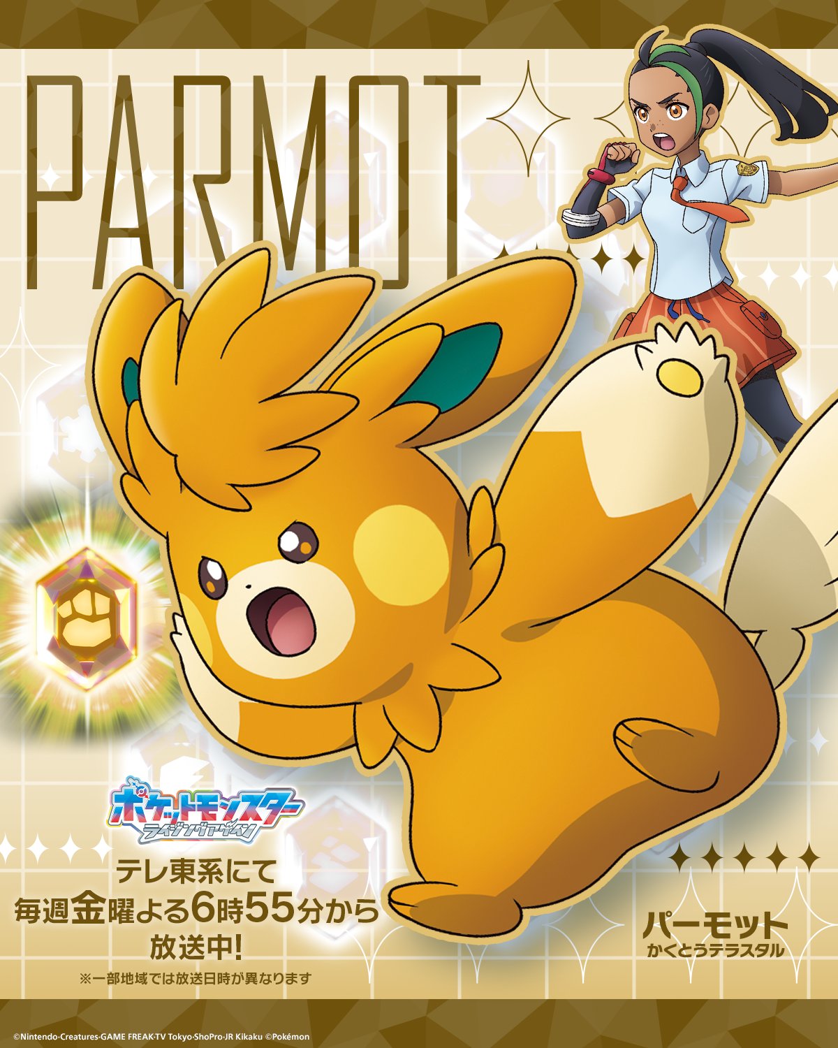 https://x.com/anipoke_PR/status/2042120335823401463>We present key frames of Nemo and Nemo's Parmot from episode 133. If even a single one of the 18 Teras Type Pokémon ends up absent, the Rakulium can no longer be eradicated... Now, how are they going to battle...?