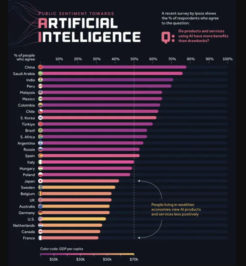 >>287369109>I don't think the Japanese care about AI. From what I've seen, most support it over there?No you retardThey're one of the top 10 countries that hate AIThe ones that love AI are countries with tons of poor, uncreative people like China or India. I am not joking.