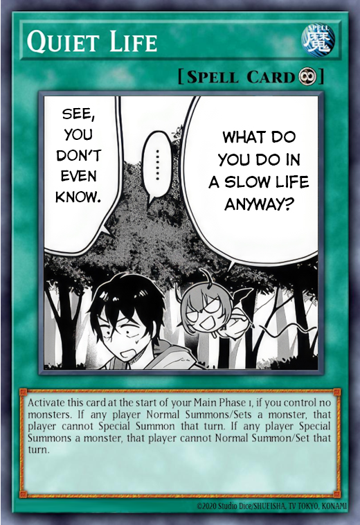 >>287371318What hell would you even do in that slow life?>>287372341There is two different stories with the exact same premise.