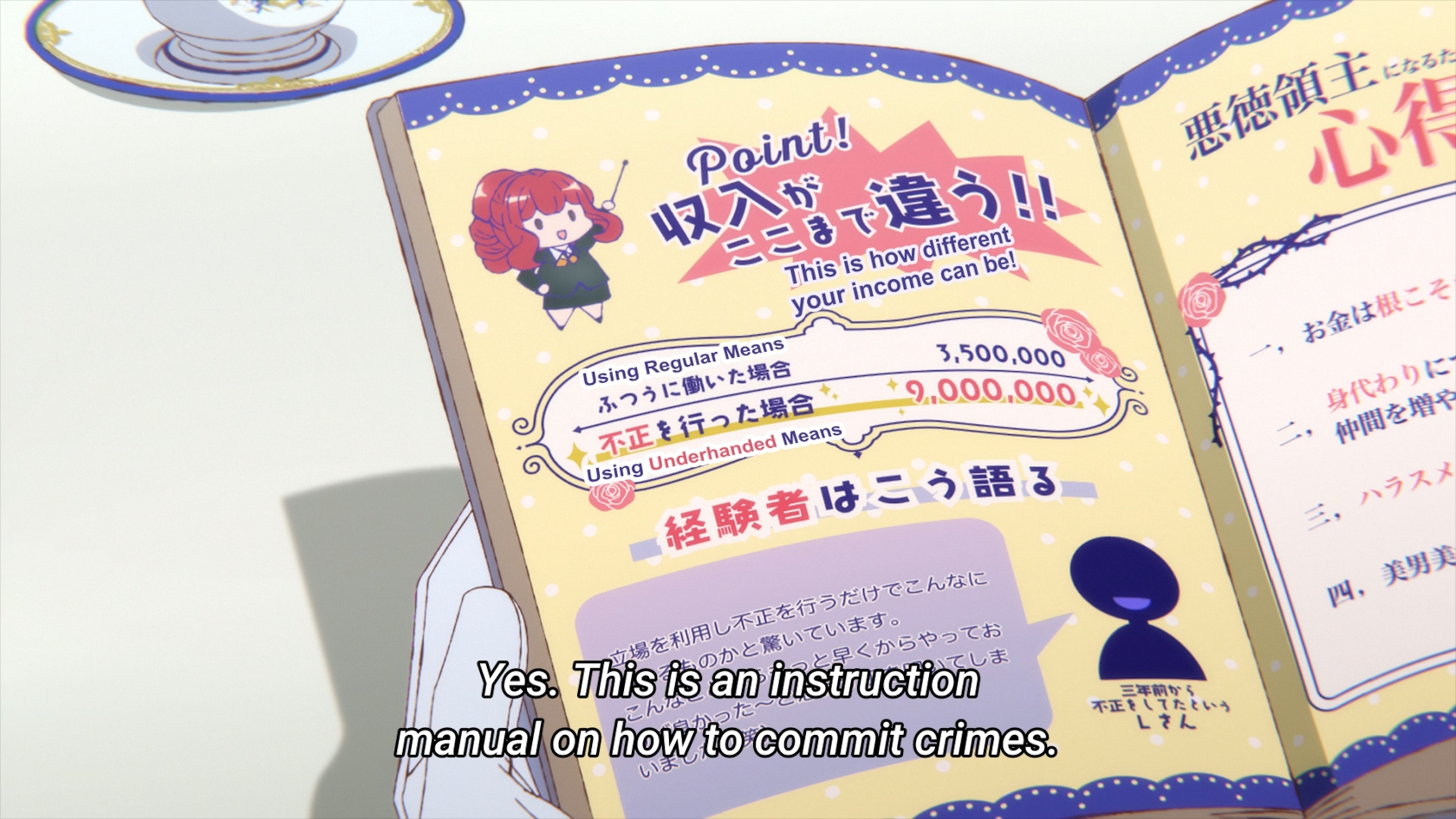 >plays the victim so clueless nobles take pity on herWhat a cunnyng child