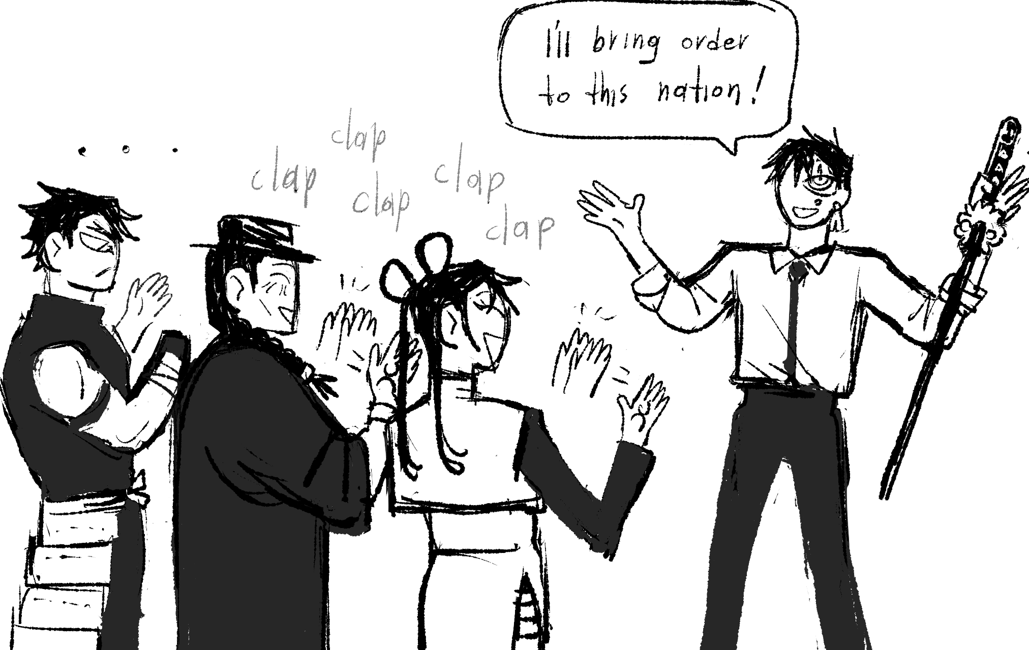 Mashiro (thinking): If I had to take a guess, those 4 are the ol' geezer's handymen. But..