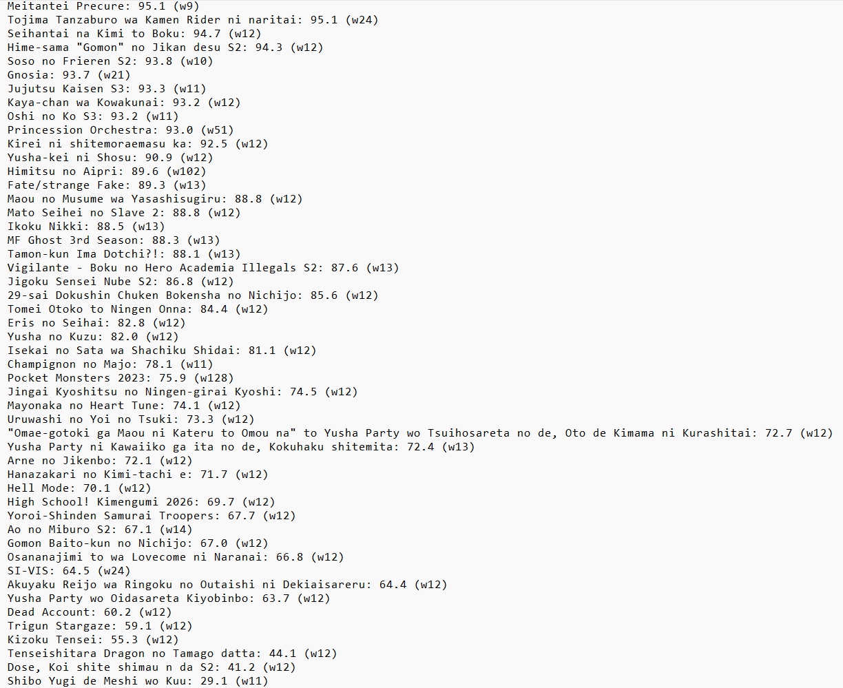 >>287375847Note that this week's episodes of Precure and Pokemon counted as winter cour episodes for some reason. These shows will join the spring list next week.