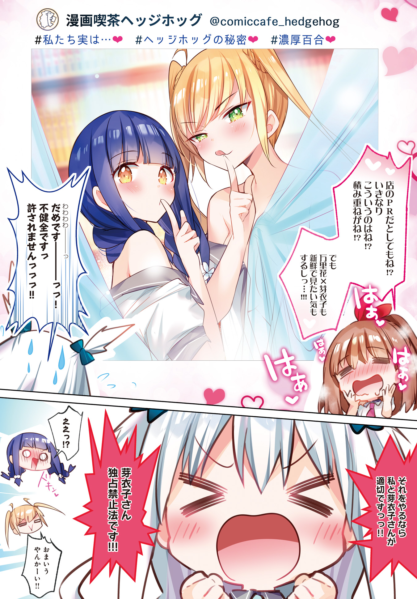 >>287416158Are you sure? Because I hardly see anyone using the phrase and pixiv points out that 百合百合 is already by itself an intensification of 百合: https://dic.pixiv.net/a/百合百合That's also not the only time the author has teased yuri. You can even see that Kirara is advertising the series some big upcoming yuri fair.