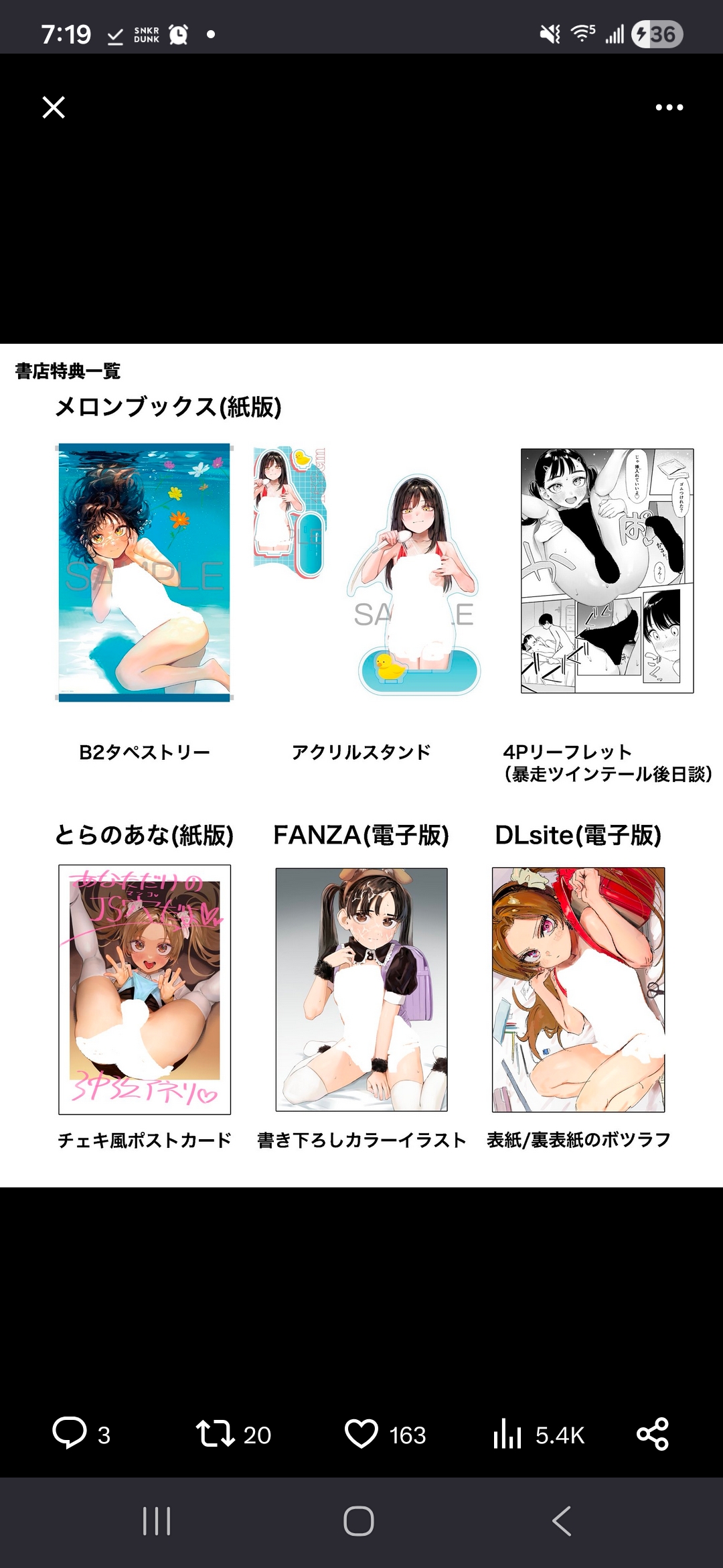 >>287398641Assuming I'm interpreting this correctly: Melonbooks? You get an acrylic stand, a tapestry, and a 4 page booklet compared to the single item fare the other three stores are offering. And also the melonbooks girl looks erotic.