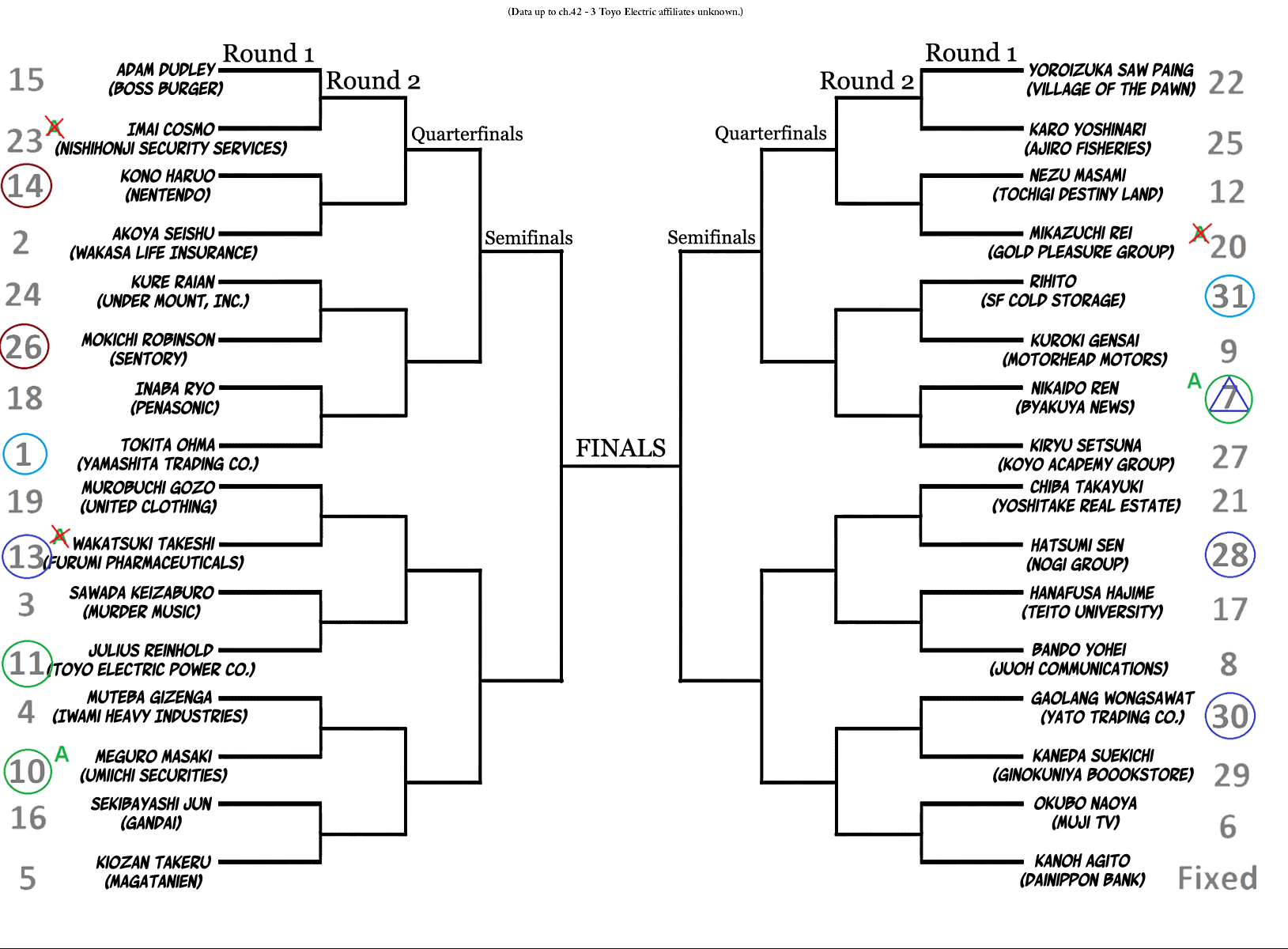 >>287412871The number didn't determine where in the bracket you were, it determine when you get to pick your position. Kazzy was first so he got first pickings and chose the fourth match.