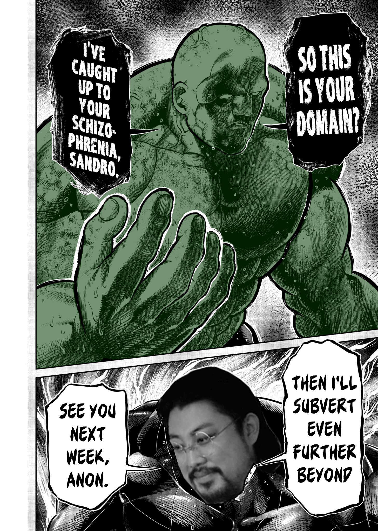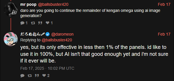 >>287430494Anon... Sandro has been dead for years.You thought it was Sandro using AI? No, they replaced him with an editor and an AI when he died of mangakaietus.