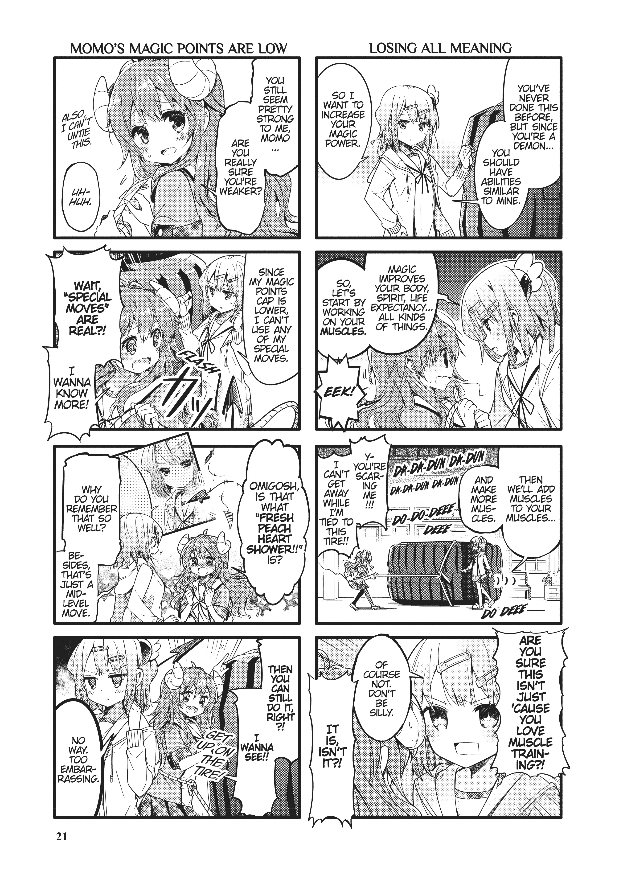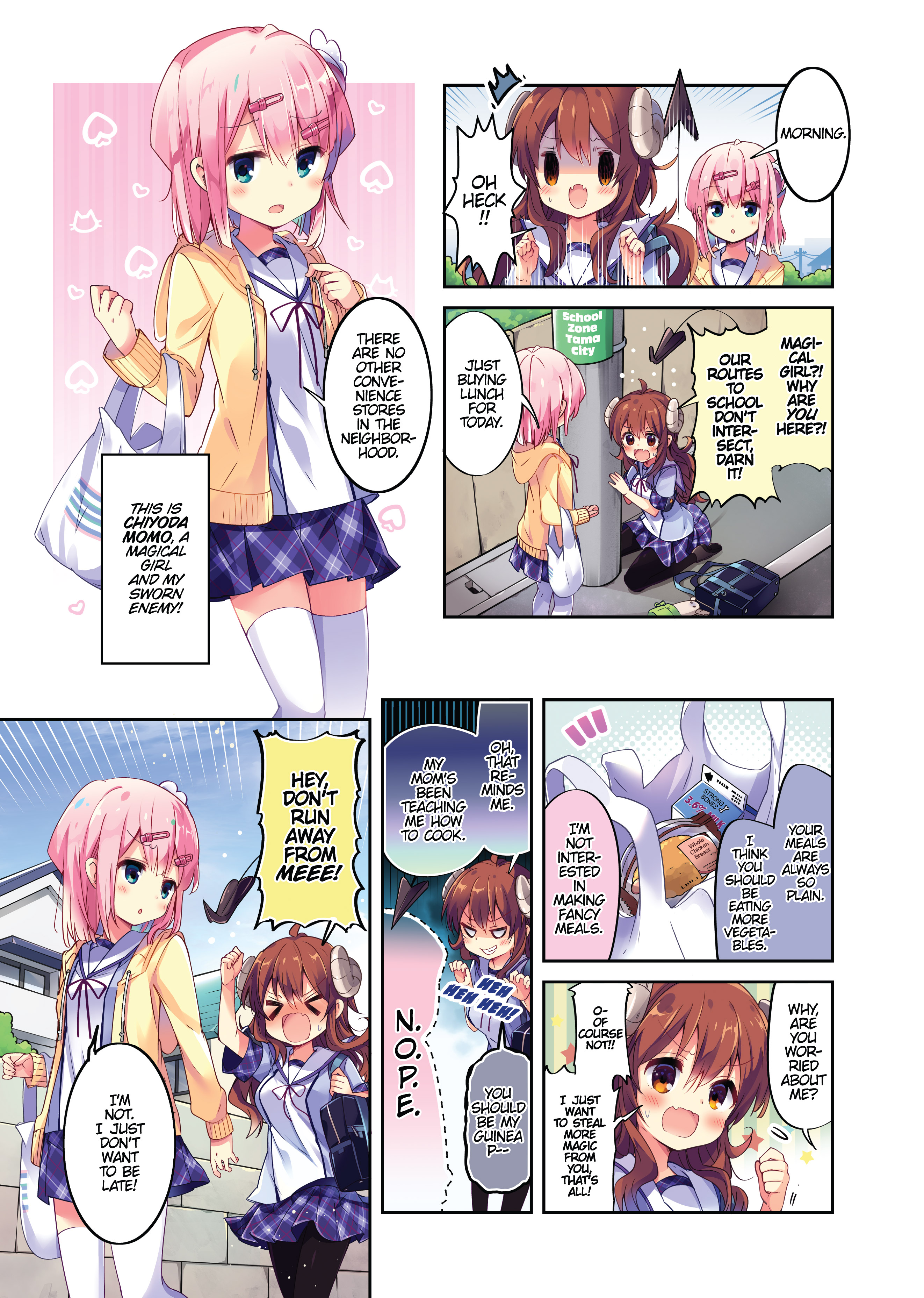 One morning, fifteen-year-old Yoshida Yuko wakes up to discover she has sprouted demon horns and a tail! Not only that, she learns from her mom that she has supernatural powers and an important mission—to restore her family’s glory by defeating the local magical girl. The magical girl in question is Chiyoda Momo, a student at Yuko’s school. With strength that is only mediocre at best, Yuko’s task to vanquish Momo will prove more challenging than she realizes in this topsy-turvy magical girl comedy.1-10th Street: >>287303243
