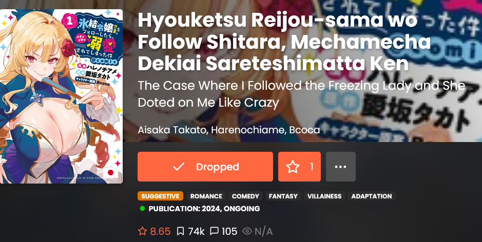 >>287413001There's new stuff but it doesn't get translated that fast if at allLike the last 100 Man no Inochi TLs from last October, Takarakuji from 2024.Karna's manga last TL was 2023. We're just starved for TLs.