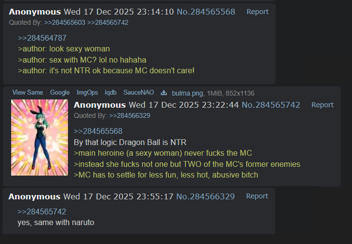 >>287414581NTR will take over isekai as the new mainstream genre whether you like it or not